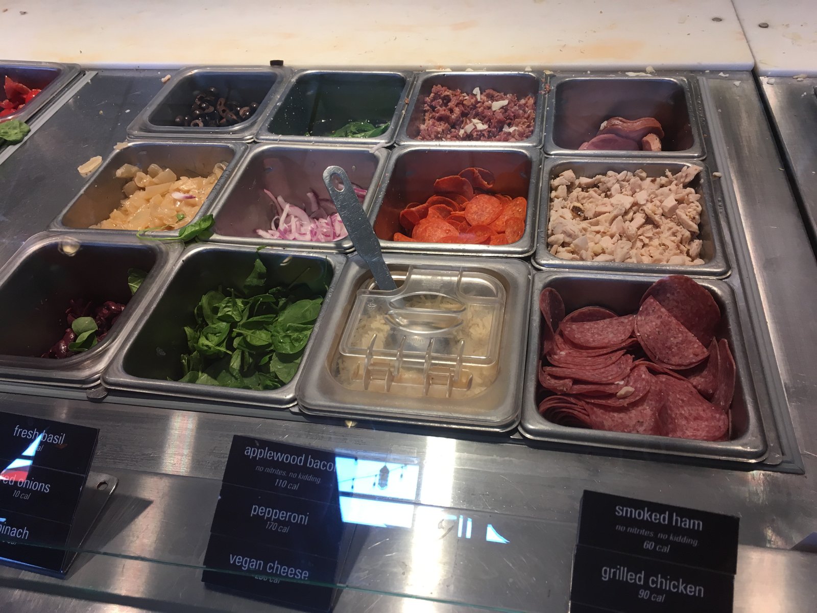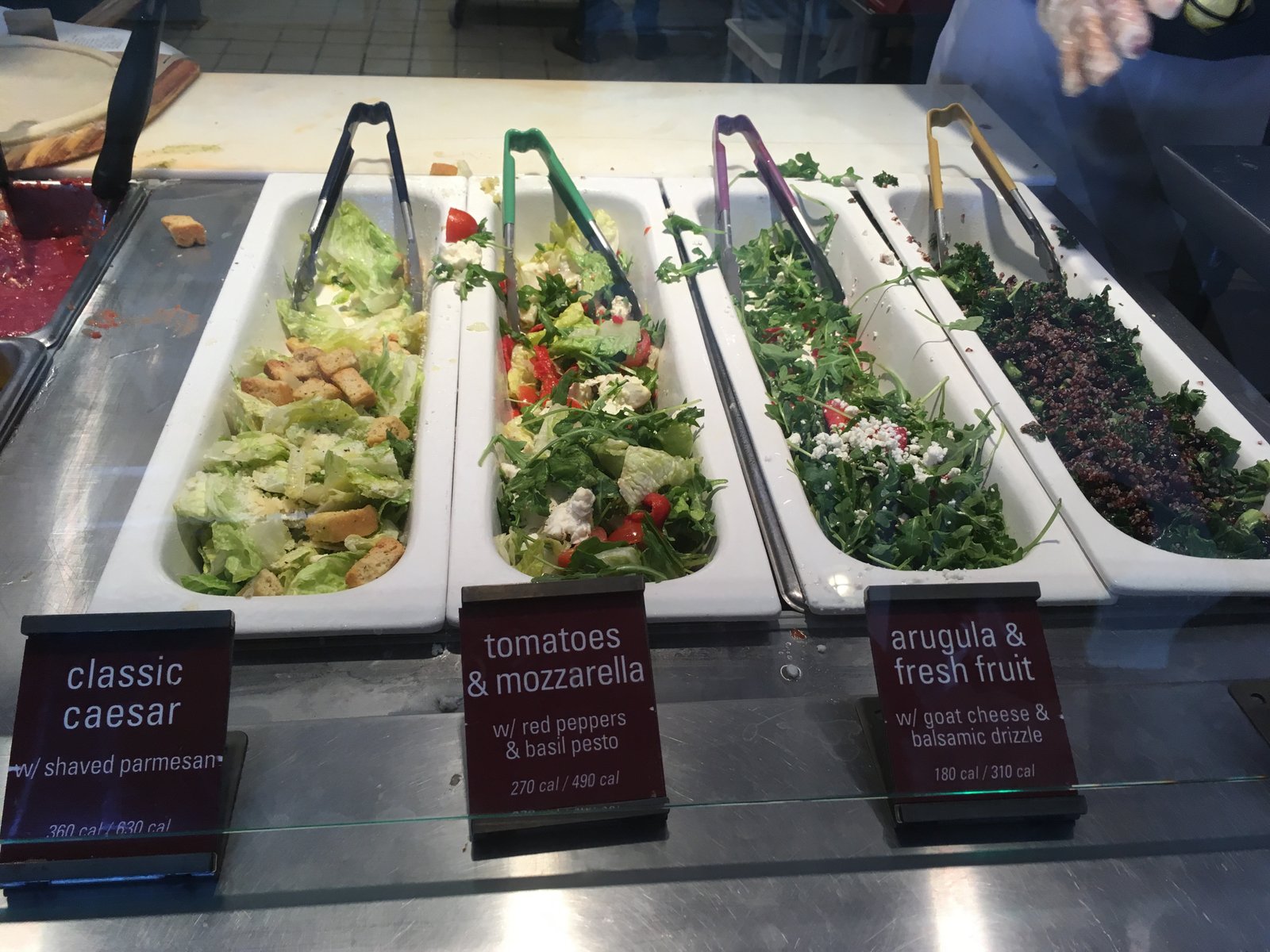 For one, there are four types of pre-made salads to choose from (although you can make a personalized/'Build Your Own' salad from all of the pizza toppings).