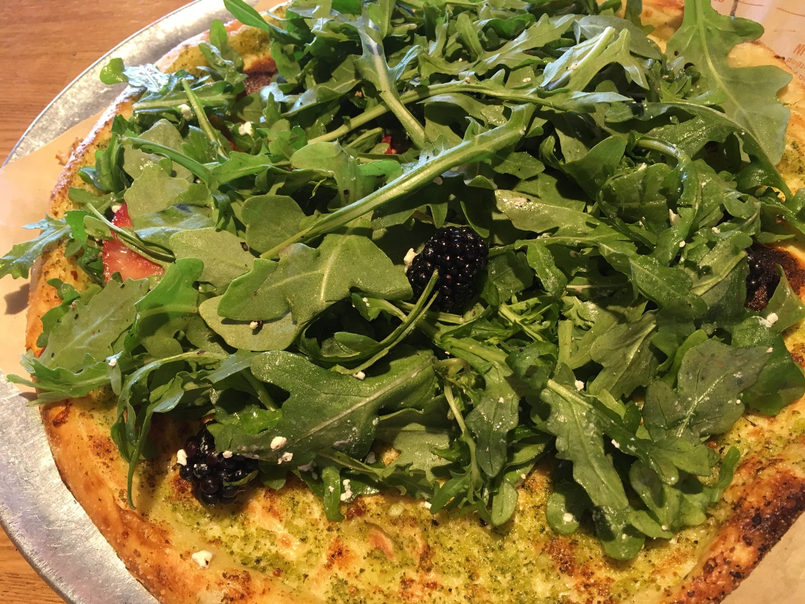 On a return visit, the Salad pizza topped with an arugula salad that had fresh blackberries was available. Again, a great meal.