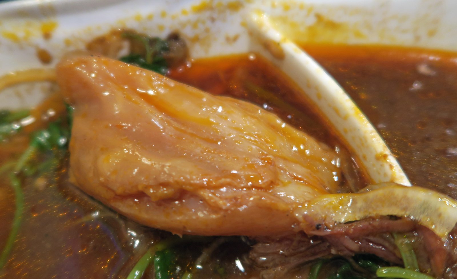 This was not bad at all. While not quite as rich as I prefer; there was a hint of beefiness to the broth. Anise and black pepper tones were more pronounced. Likewise, more of a soup than a "stew". I'm thinking things were done to not offend as there was only one piece of tendon to be had, but it was decently tender. Lots of beef, some with rather chewy connective tissue, but still rather tender, moist, no off flavors.