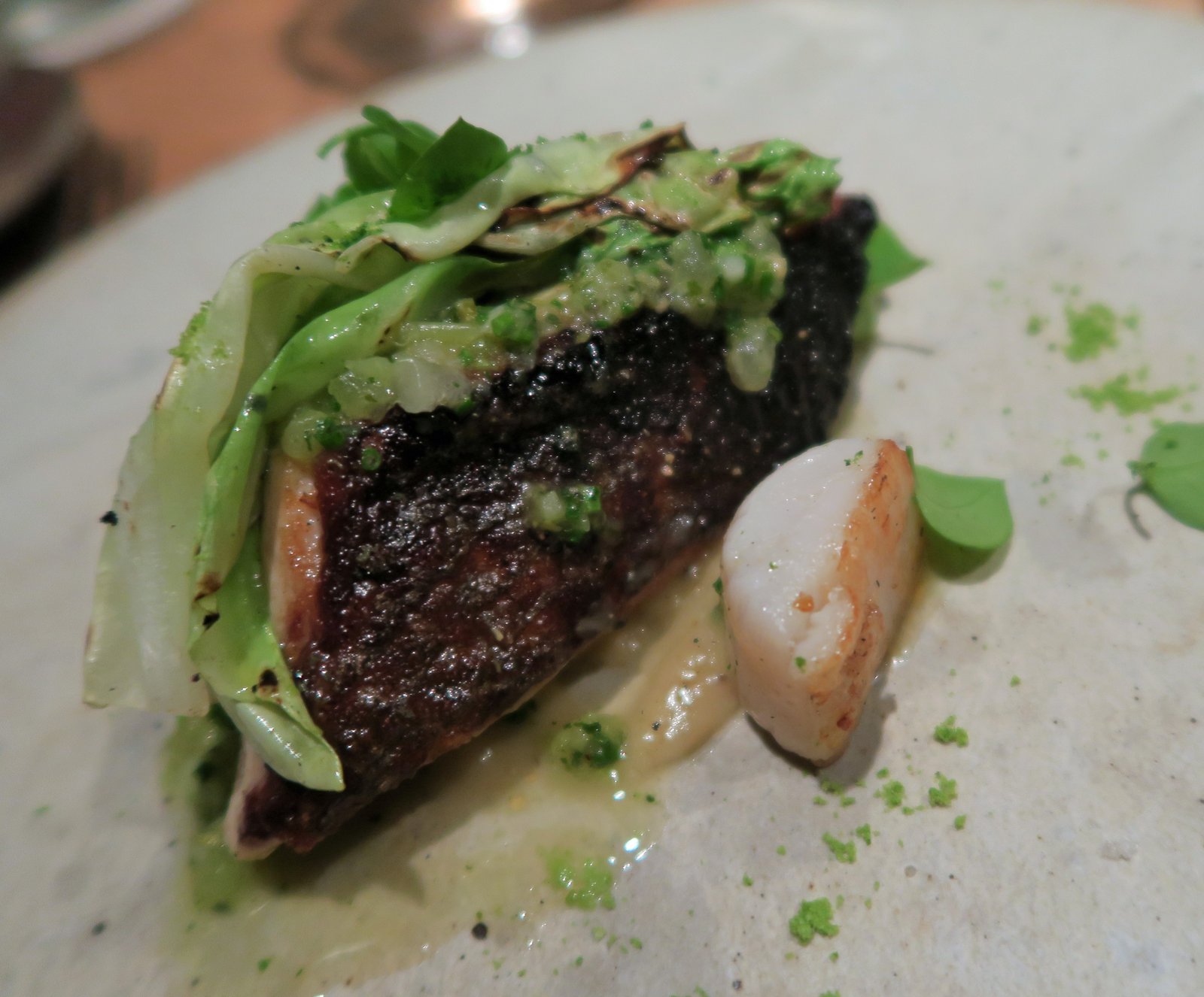 Next up was a Chardonnay from Muersault paired with Sea bass and scallop with cabbage and cabbage cream with shiso-celery cream.