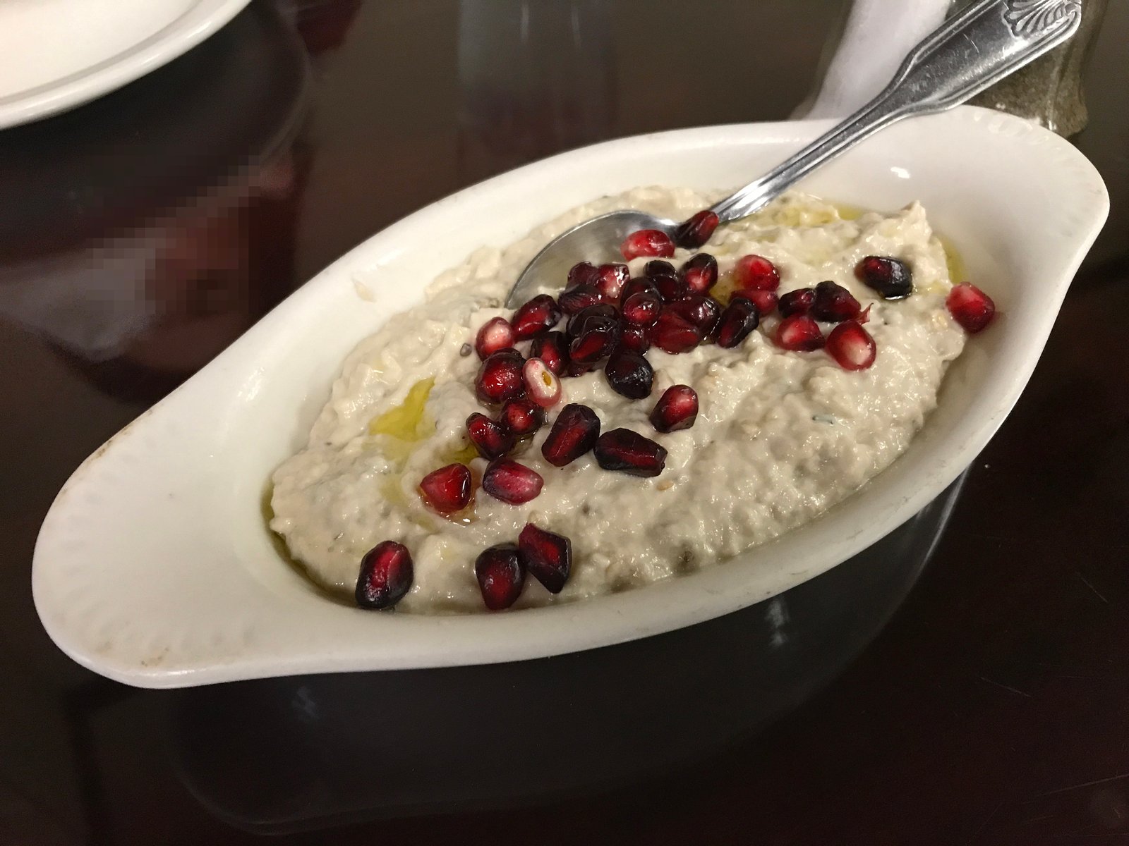 During our earliest visits, the Missus didn't care for the version. But over the years, She has grown a bit fond of it. Less smoky flavors, very smooth, a good amount of sesame paste. The pomegranate seeds add a nice tangy contrast.