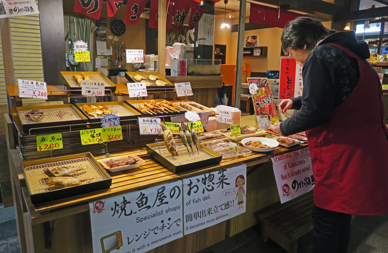 Also, I'd heard that Kanazawa was booming since the Shinkansen extension to the city was completed in 2015. So I thought this would be a fun diversion. We left Takayama, transferred to the Shinkansen in Toyama, and made it to Kanazawa at around noon. I was surprised at how reasonable hotel prices were in Kanazawa, so I figured "what the heck"? And booked us a nice room at the Hotel Nikko. Of course we arrived too early to check in, but were able to drop off our bags at the front desk, and headed off to get some lunch.