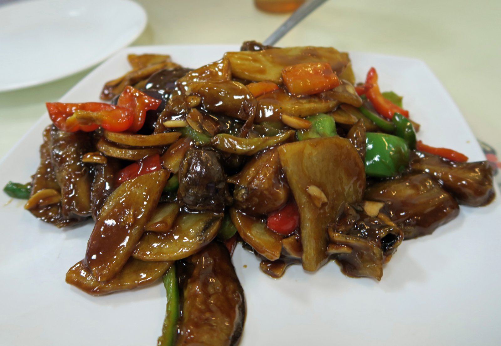 This was like every bad stereotype of Chinese food out there. The dish was gloppy, too sweet, the eggplant wasn't cooked properly, as in the skin portions were hard and inedible and the interior pieces almost crunchy; lacking the buttery texture of well cooked eggplant. There was a shortage of one of the "three treasures", the bell peppers.