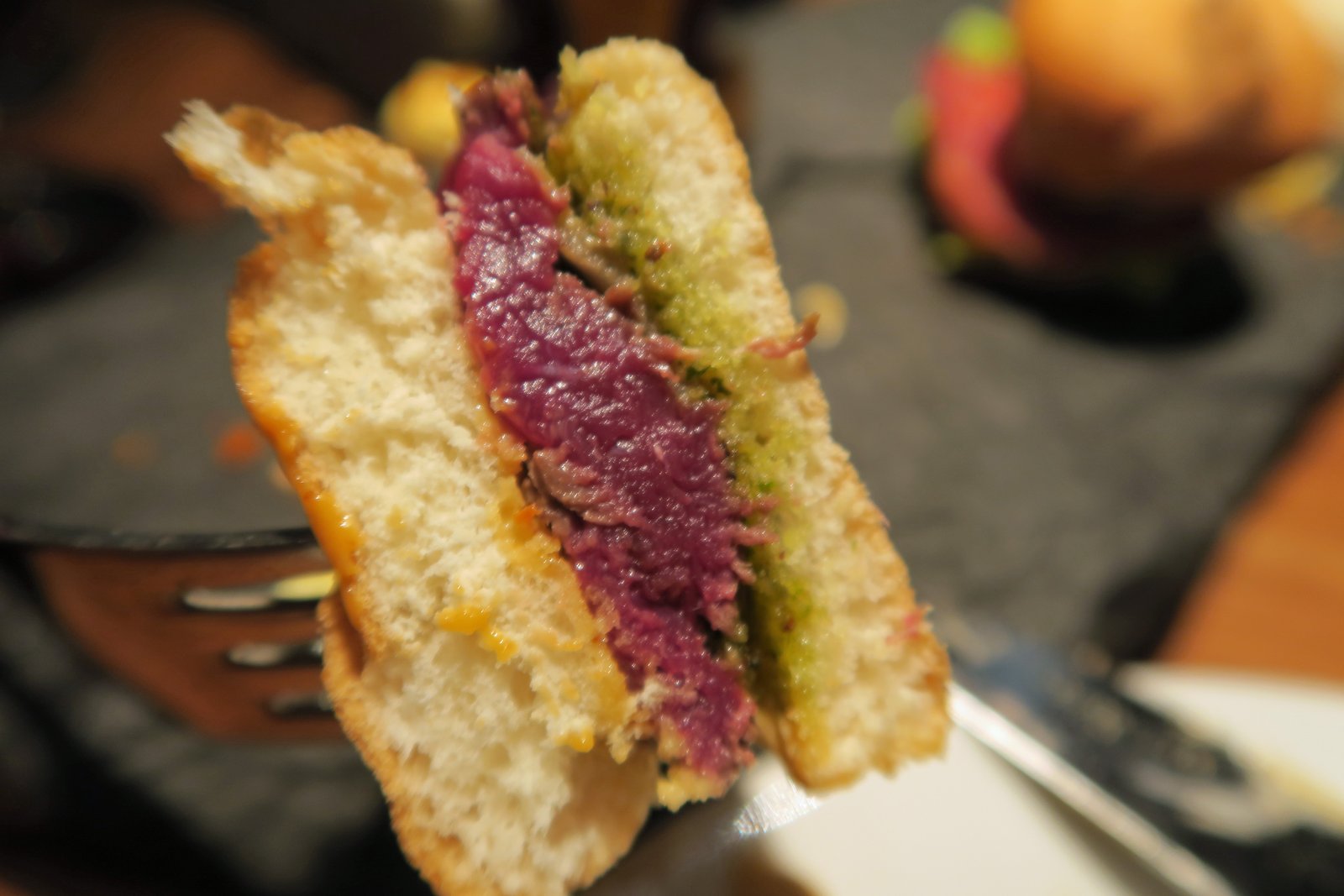 The whale was by far our favorite as it went strangely well with the pesto and was very meaty, with a flavor that edged toward grass-fed beef. The puffin had a rather strange livery-fishy flavor; kind of predictable, since it's main diet is small fish. While I won't be searching it out in the future, I was glad to have tried it.