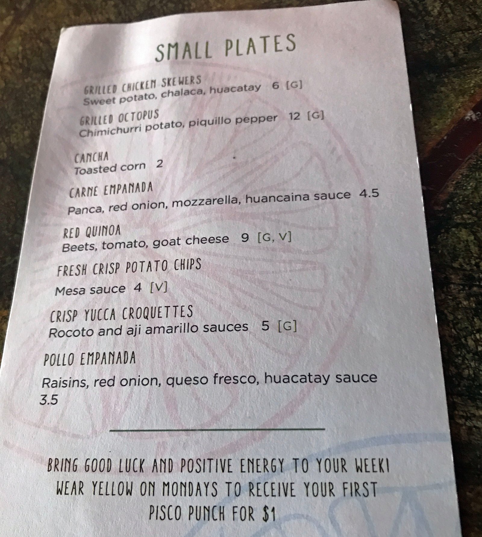 So, what to say about Pisco? I've got mixed feelings. I enjoy more restaurant choices, but have never been one to be "just happy to have it", if you know what I mean. I think the best explanation of the food at Pisco is what "Mike" told me that day at the bar when I mentioned that what I'd had at Pisco just wasn't quite "there", if you know what I mean. He told me, "look, I think Pisco is Peruvian food for those who never had Peruvian food. It's an introduction." Fair enough; I had my "gateway dish" all those years ago, but have grown and expanded my horizons. Hopefully, Pisco will too.