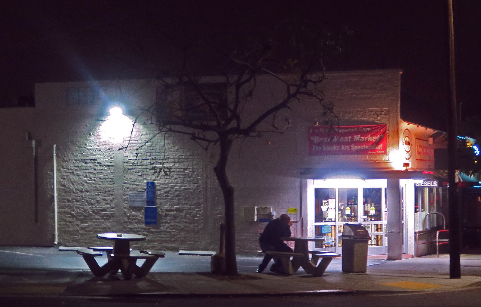 Finally, on New Years Day; the Missus got called into work. So I decided to take a drive around the neighborhood. It's strange what catches your eye…….I saw this guy sitting at the outdoor table at Seisel's. All the businesses were closed. For some reason I find it sad and kind of haunting.