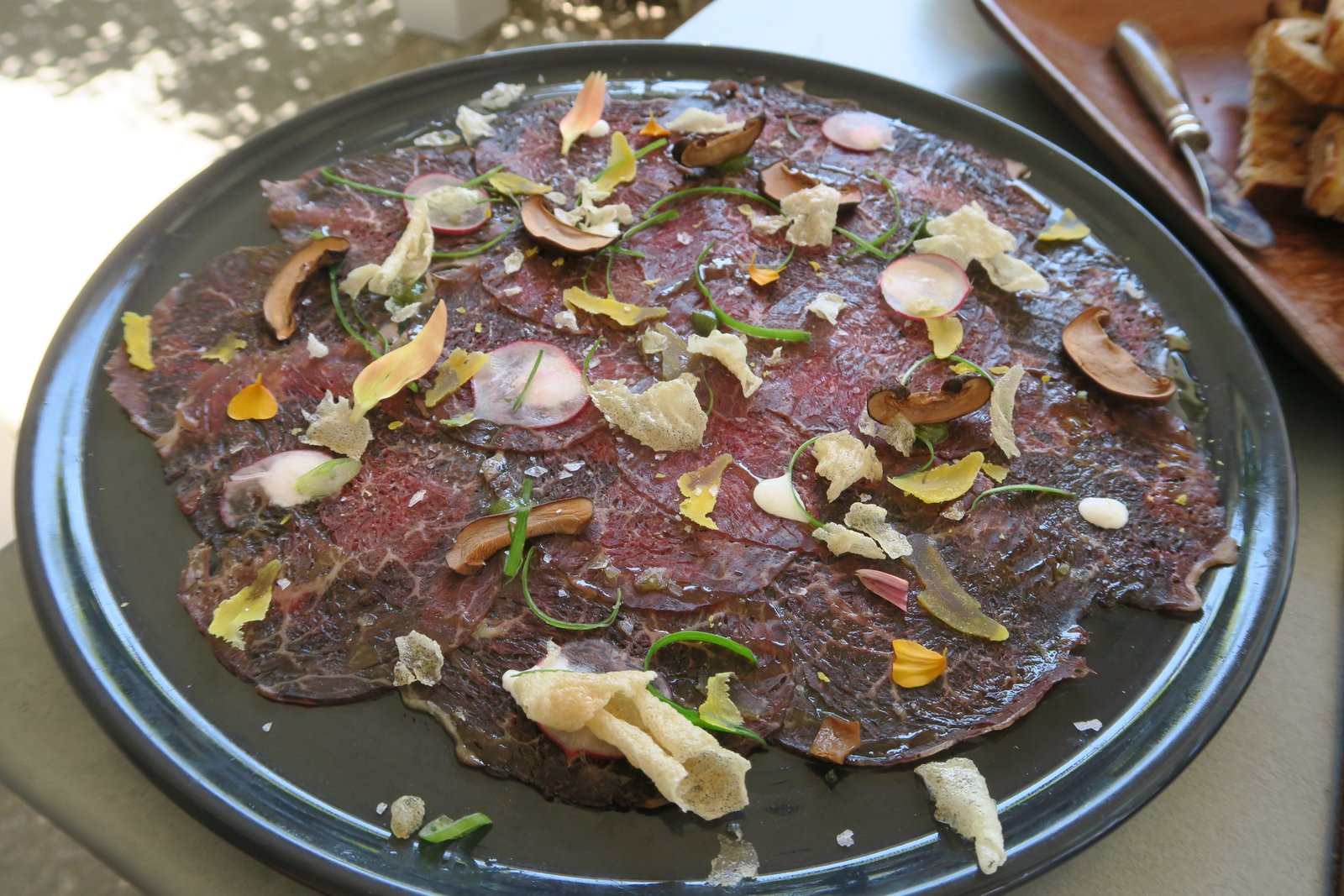 I thought the Smoked Wagyu Carpaccio ($17) sounded interesting. I will say, it was "different".