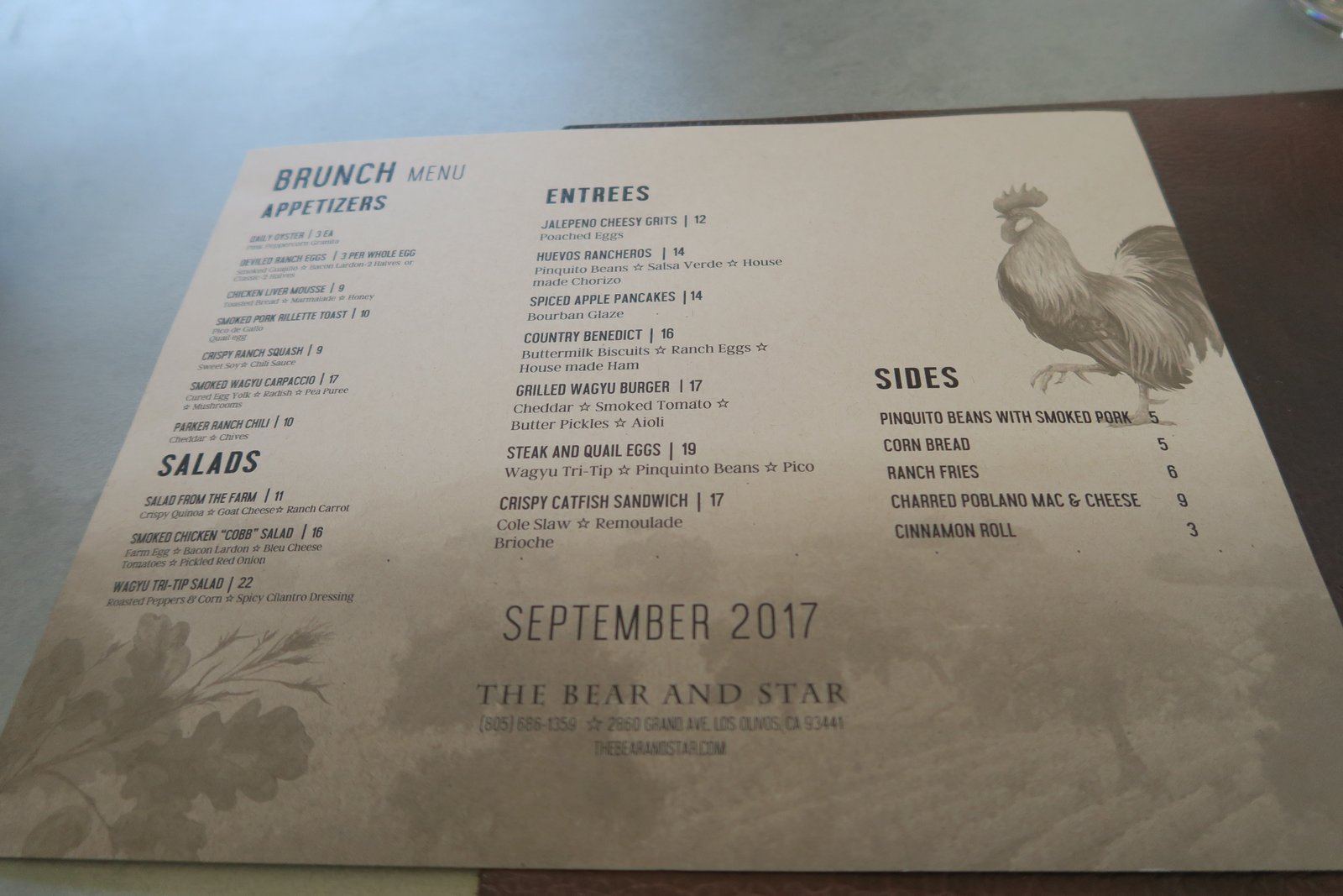 We had a fun time stopping in Solvang and doing olive oil tastings. But it was lunchtime and both of us were getting hungry. I had several places on my "list"; Sides Hardware, Los Olivos Wine Merchant….but it was the menu at The Bear and Star, a rather newish place in the Fess Parker (remember him?) Inn that got us to walk in.