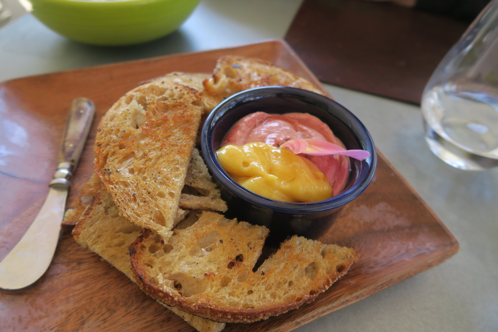 It was bit on the sweet side for us and just pouring the marmalade into the ramekin didn't help things as we'd have preferred to have it on the side. Still, very nice, light offal flavors, if a bit too sweet. I enjoyed the toast as it was crisp and overly hard.