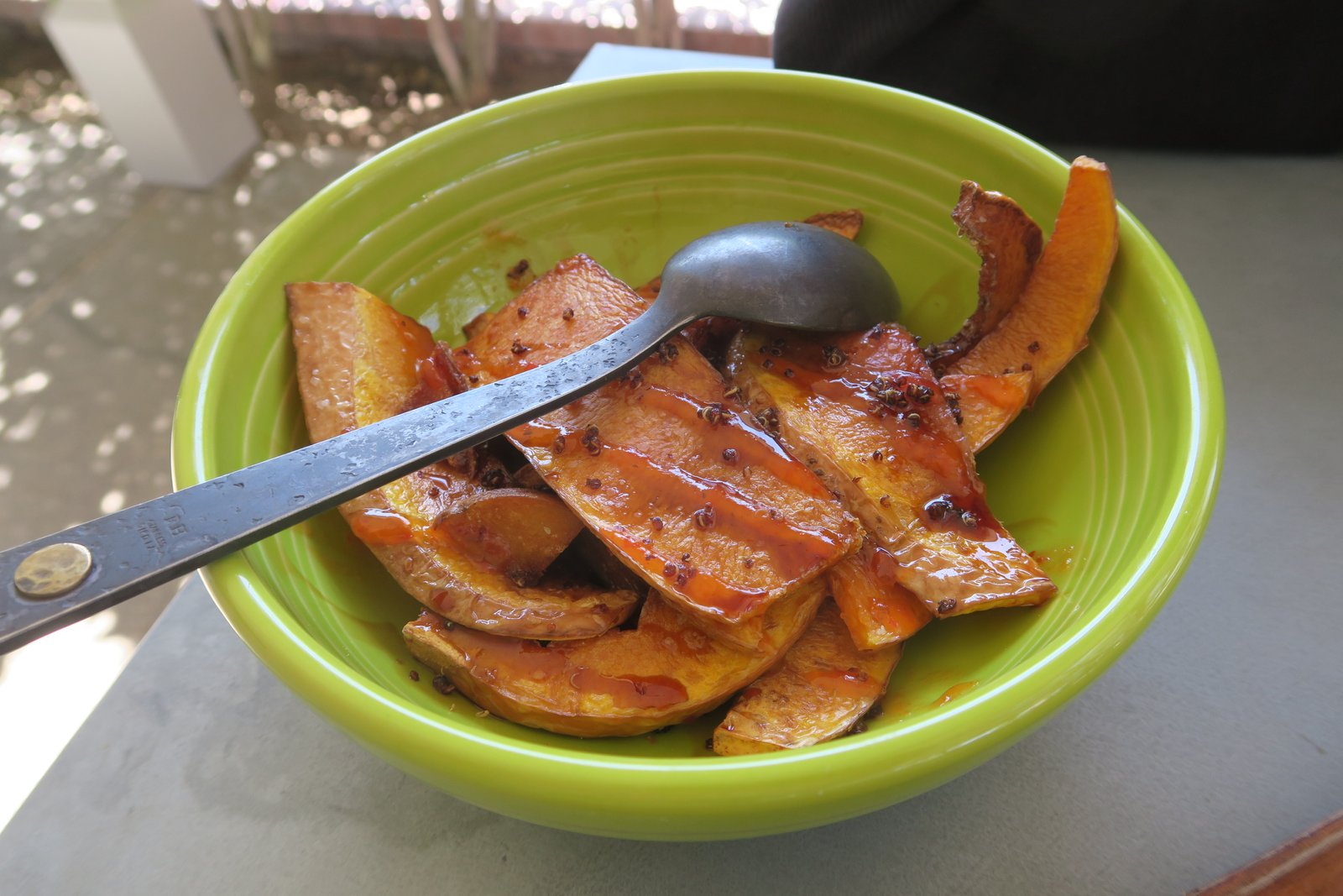 Glazed with a soy-sweet chili sauce that wasn't too salty nor too sweet; the condensed flavors of the different squashes came through. There were a couple of slices that were really outstanding. Our cheerful Server told the Missus those were slices of Mother Hibbard Squash that cam from the vineyard's garden. Surprisingly good.