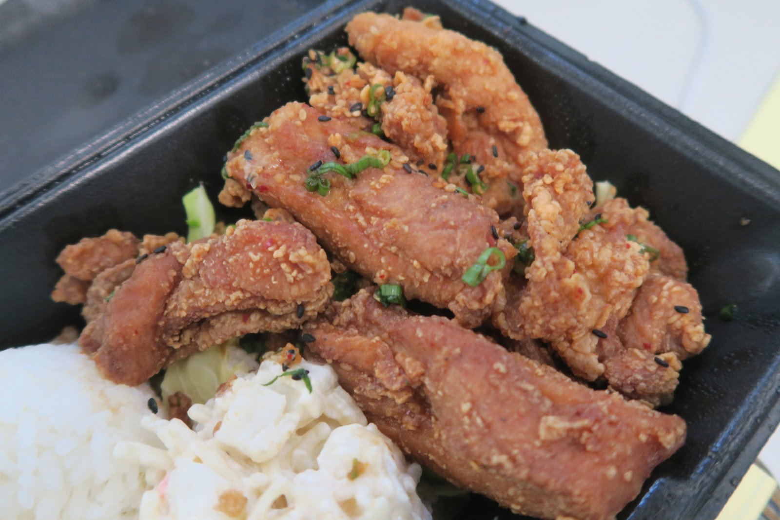So I suddenly had mini-plates of Garlic Chicken and Mochiko Chicken on my hands.