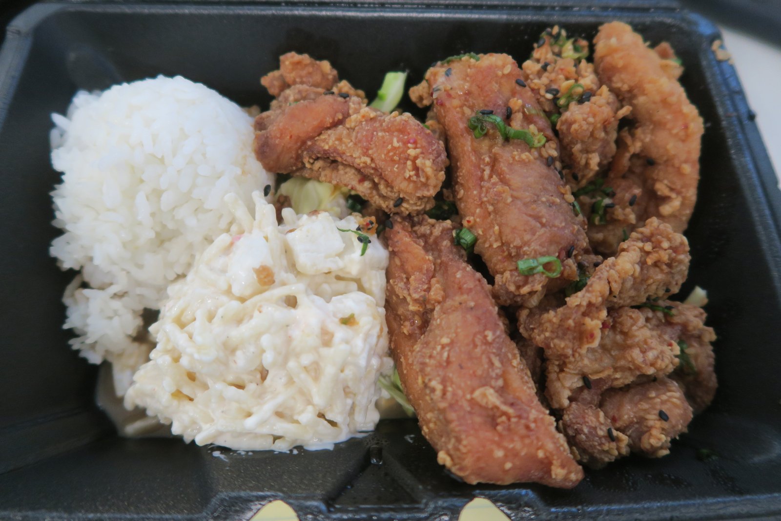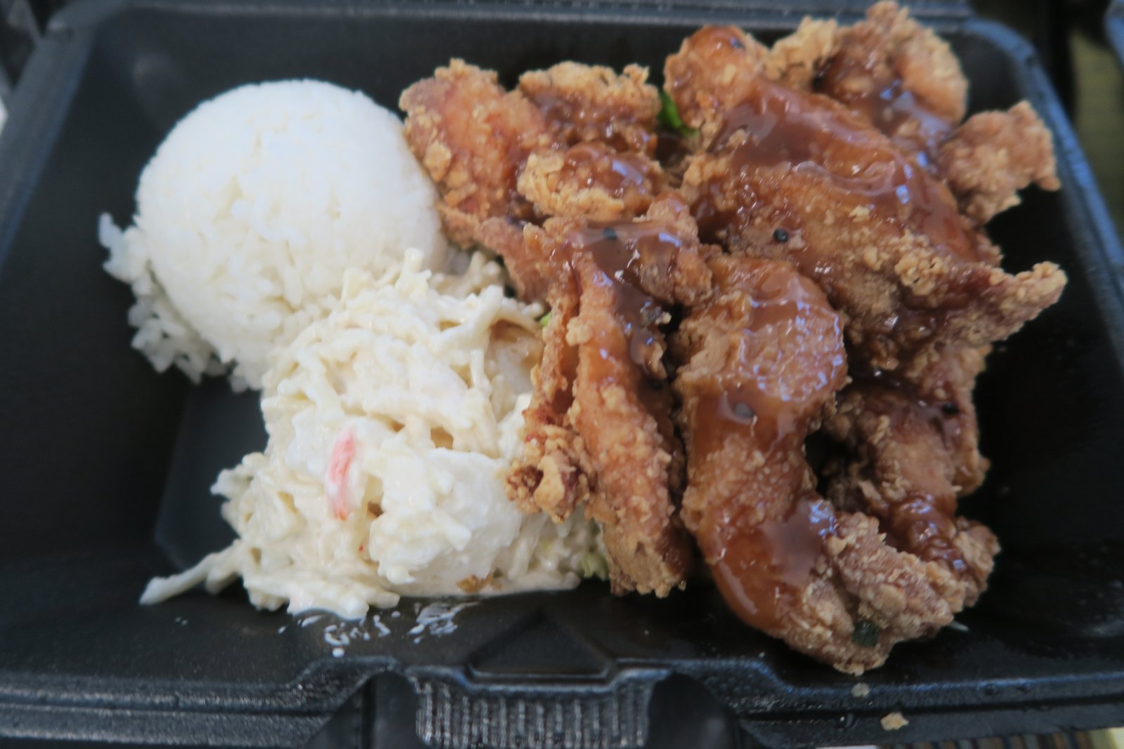 The rice was fine, but I really didn't care for the potato "mac" salad. The quotes on the "mac" is because this was like chopped spaghetti noodles. It also just tasted of plain mayonnaise with no other seasoning. The young lady really wanted to know what I thought, so I told her. Man, if I were a millionaire, I'd love to buy her a ticket to HNL, so she could actually have the real deal.