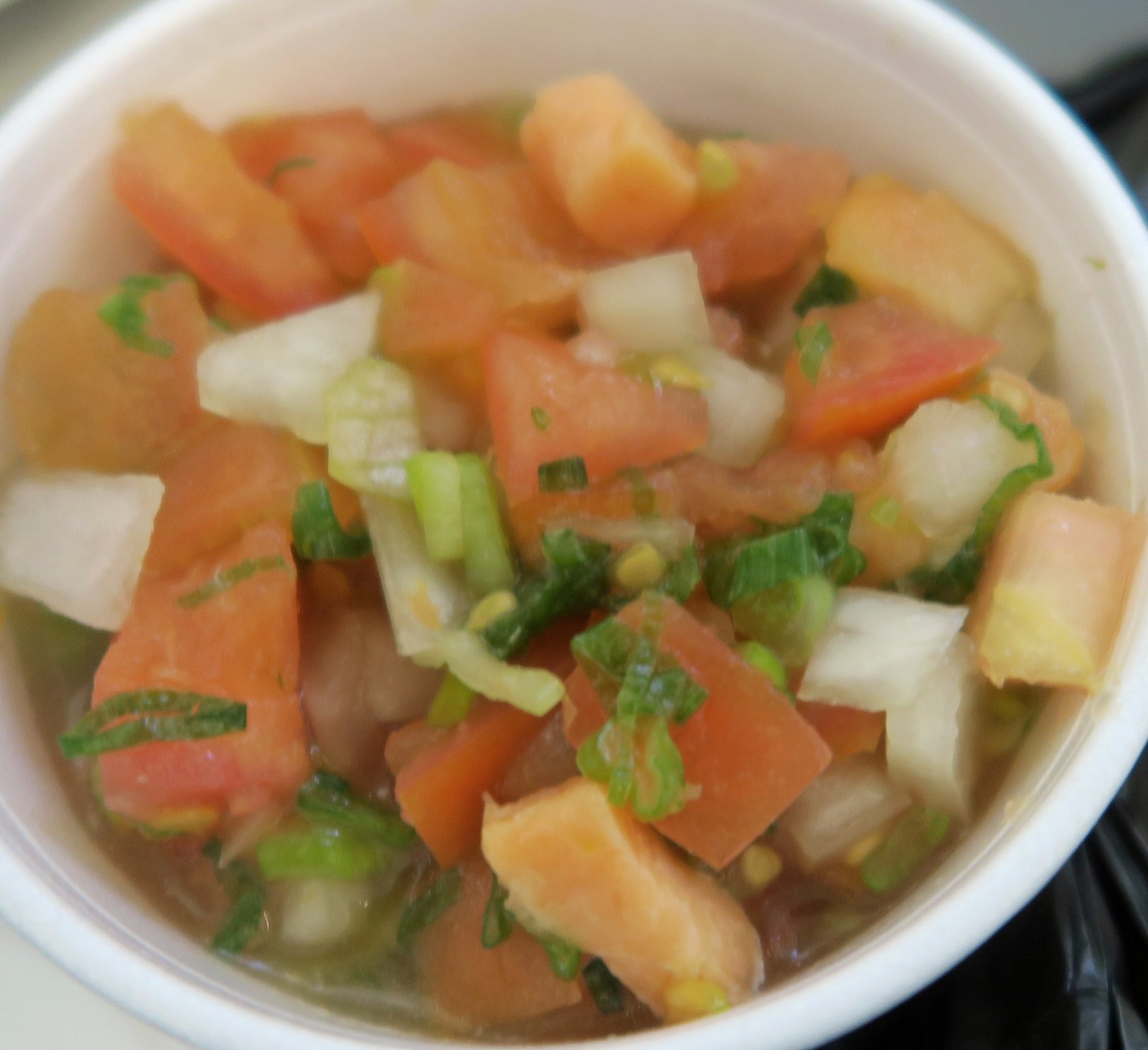 I didn't expect much of the lomi salmon and it was just that. Really in need of seasoning; the tomatoes not ripe enough, too watery, quite bland.