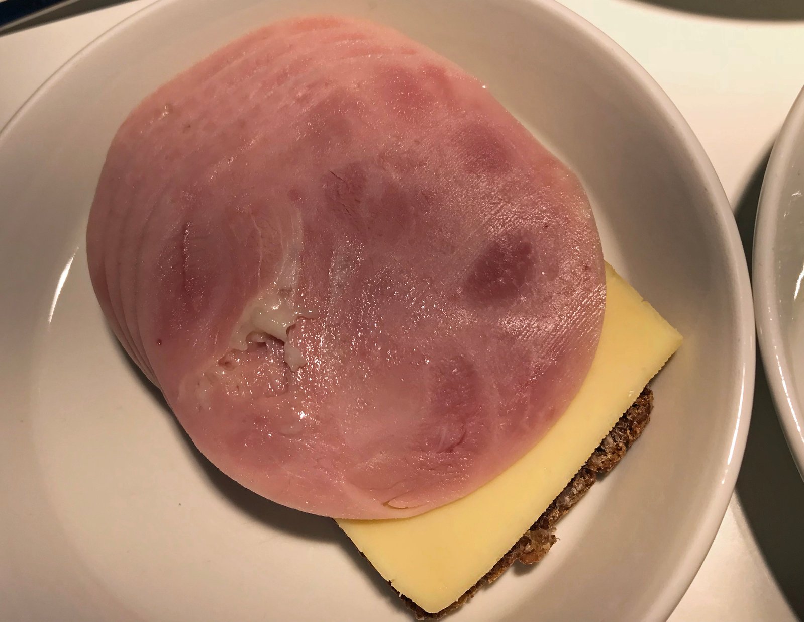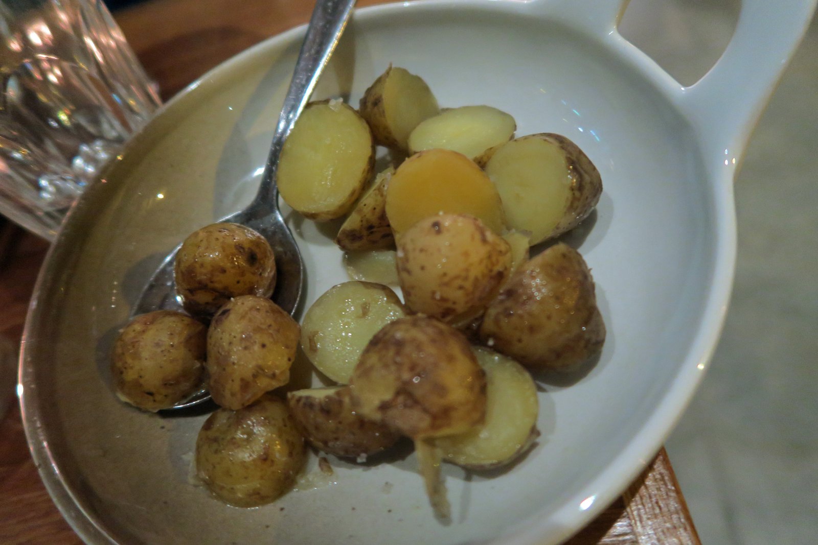 The process gives the fish a jelly like texture, which was a bit odd. At least you can't complain about dry fish here, eh? Apparently, during the last set of soaking, the fish becomes so hydrated that you don't need to add any liquid to "boil" the fish! It also has a fairly strong smell; but not too bad. The flavor is fairly mild, on the briny salty side. It definitely needed the lardons and mustard sauce for flavor. Those brown shavings are Brunost, a brown "cheese" that is made from milk, cream, and whey. It has a very interesting slightly sweet and yeasty flavor. The mashed peas were very bland, the potatoes, simply done were delicious.