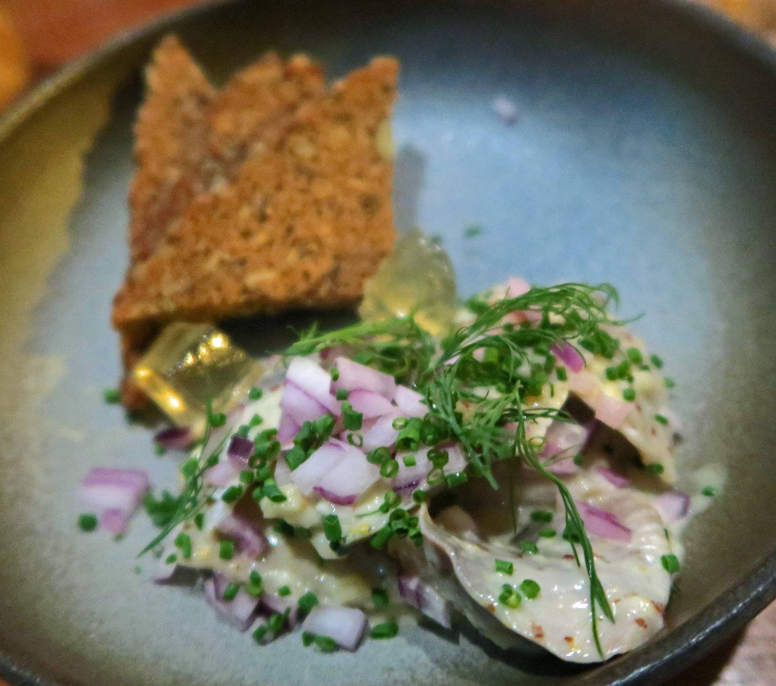 This was delici-yoso!!! Just a couple of bites, but man, the herring melted in your mouth. It wasn't fishy in the least; very savory, and I'm thinking the Aquavit really added a nice touch of sweetness.