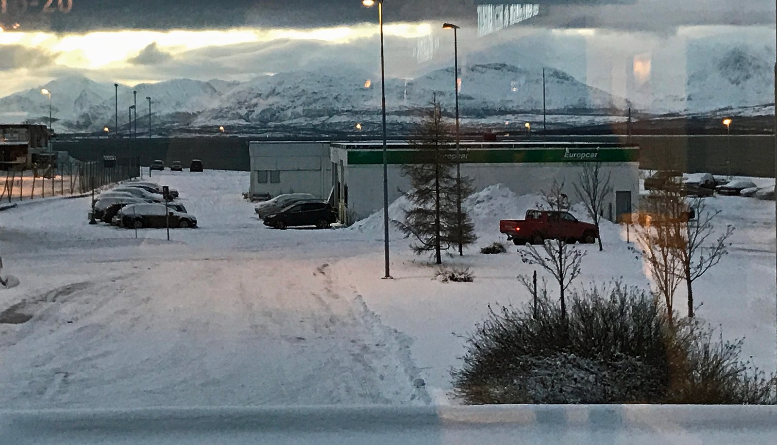 Our flight from Tromsø was scheduled for 1030 am. We got up, packed and walked over to the stop for the airport bus.