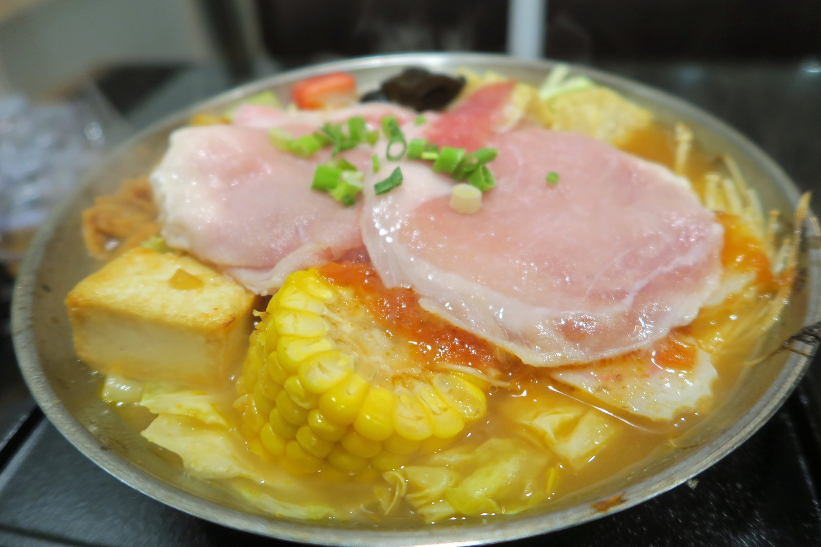 I got this with the vermicelli noodles, which was a rather small portion. There were three good sized pig's feet in the soup; which were nice and gelatinous, not overly tough, and tasted pretty good. The rest of the items in the hop pot were routne; one lonely clam, two slices of kamabuko, two pieces of surimi, a whole lot of cabbage, a slice of corn, and the item I enjoyed the most (next to the pig's feet) frozen tofu. The broth, while on the salty side, had a nice numbing-spice to it. I just needed a touch of hot bean sauce to adjust the flavor a bit.