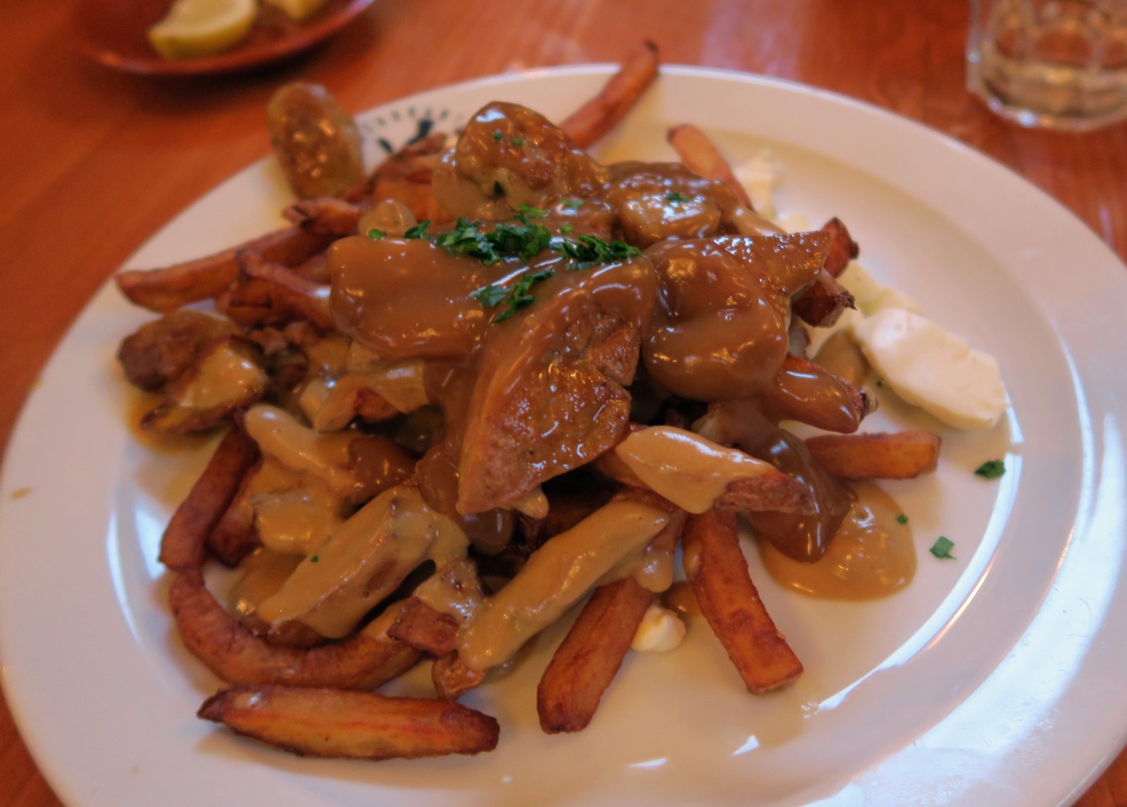 The Missus was focused on the foie here; but we only had one stomach each, so we'd have to choose well. We started with the Foie Gras Poutine ($24 CAD – about $18/US)