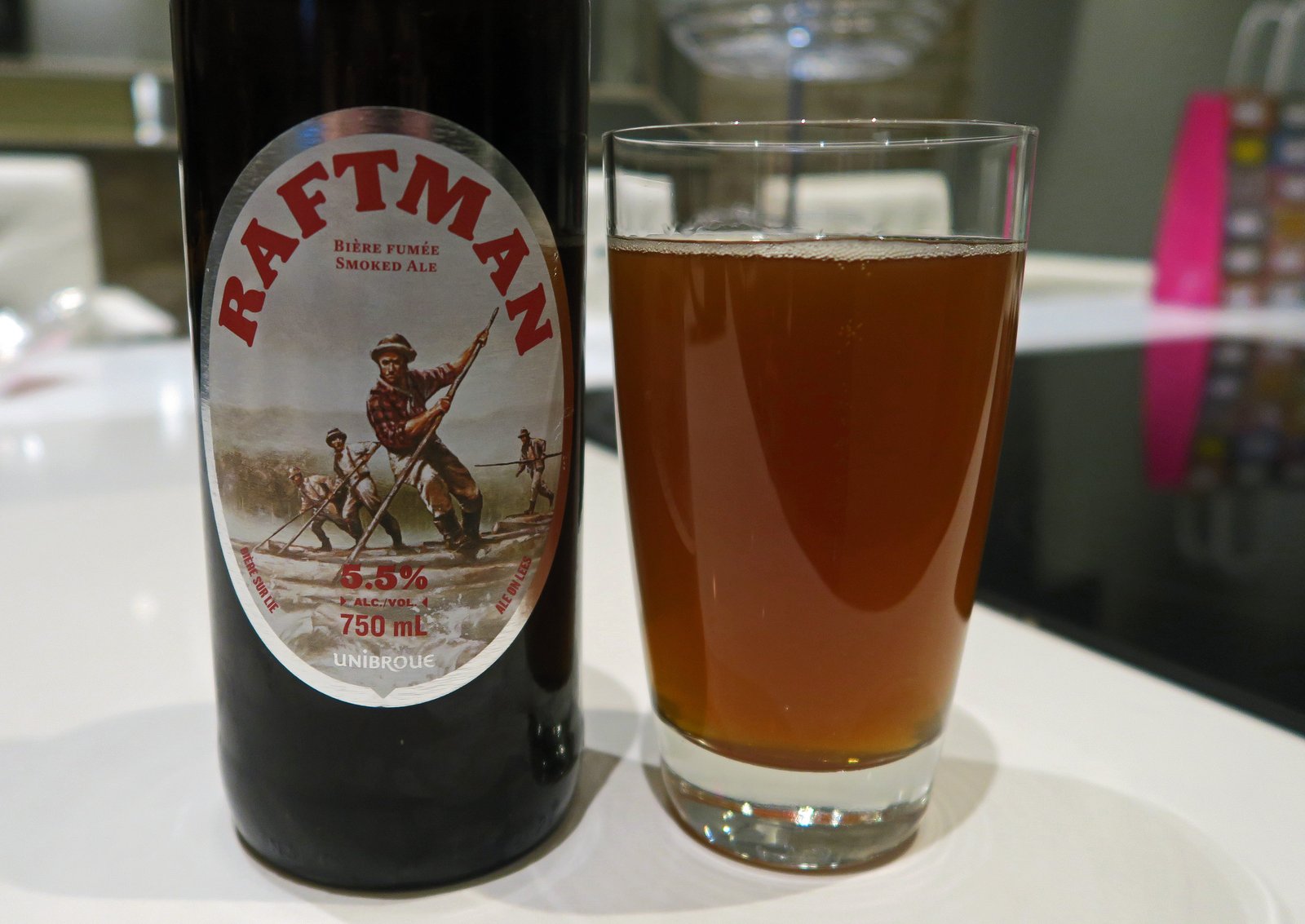 On the way back; we stopped by the local Provigo Grocery. While looking over the beer, I quickly noticed that all Unibroue beers were on sale for $3.99 CAD….that's like three bucks US! There was quite a selection of stuff we don't have here in the states. So, I bought two bottles. On this evening I had the Raftman, a smoked ale.