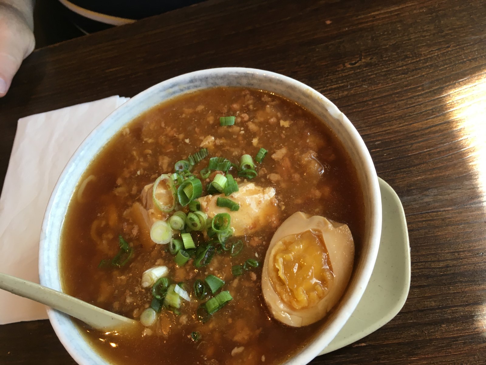 If you read any of my prior Chopstix posts (go to that search box at the top left), you know that The Mister ends up ordering mabo ramen ($7.95) following his 'pretending' of reading the menu. He enjoys the slightly sweet spiciness the sauce, filled with ground pork and tofu. The barely cooked egg is always shared.