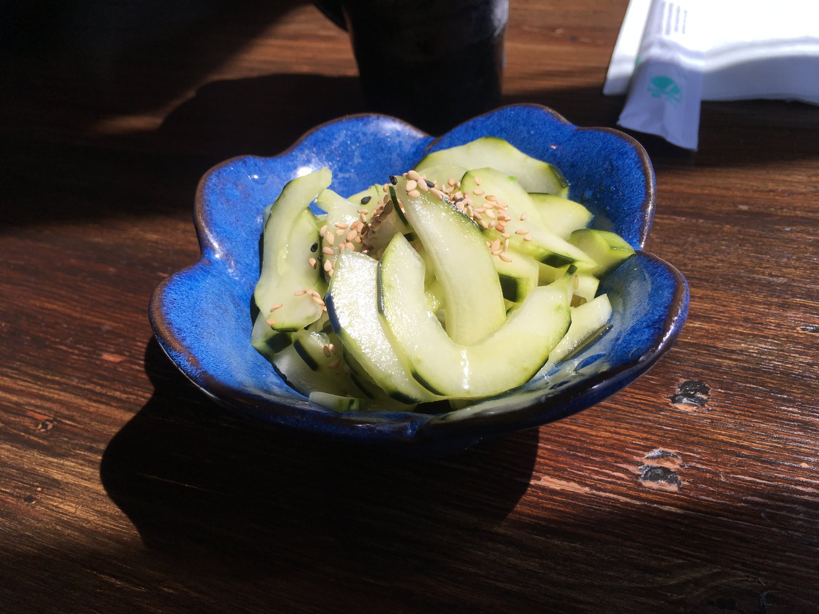 The cucumber salad ($4) is a choice on most visits, because I like cucumber. The bowl is deceptive; there is a lot of the vinegared and salted vegetable.