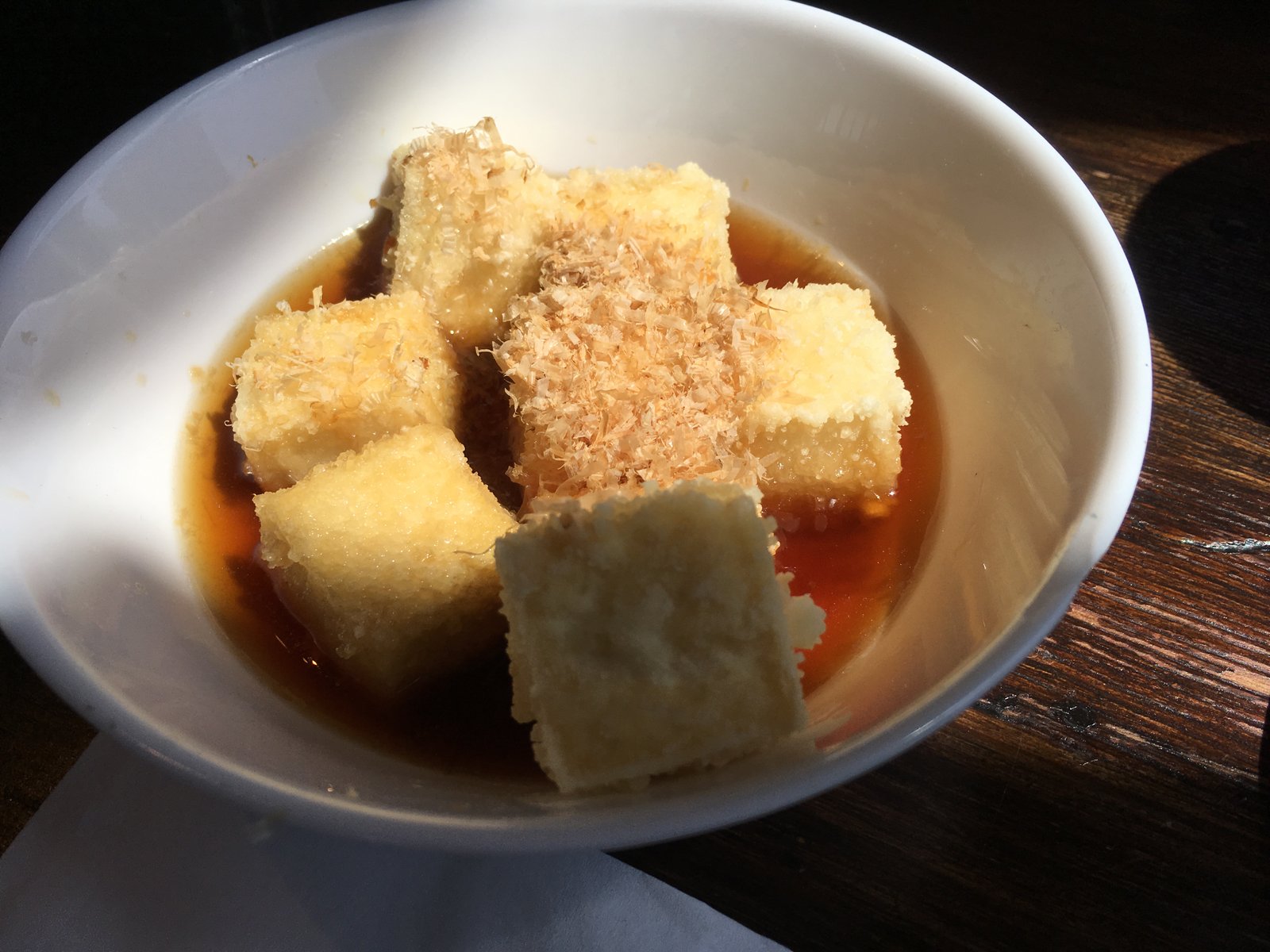 The agedashi tofu ($3) is lightly breaded with potato starch, crispy fried and served with a light soy/mirin/dashi sauce. This simple treat is a nice addendum to any meal.