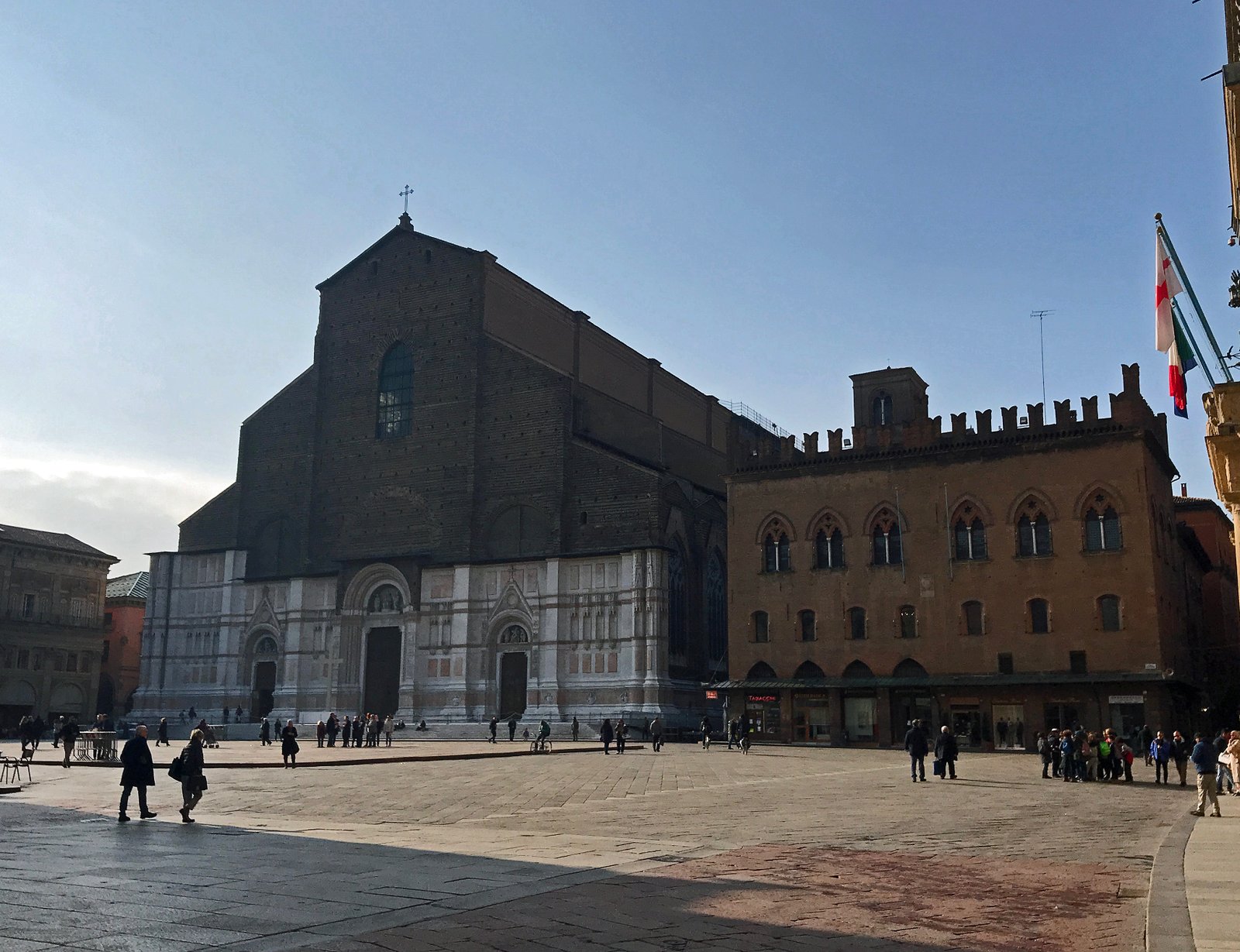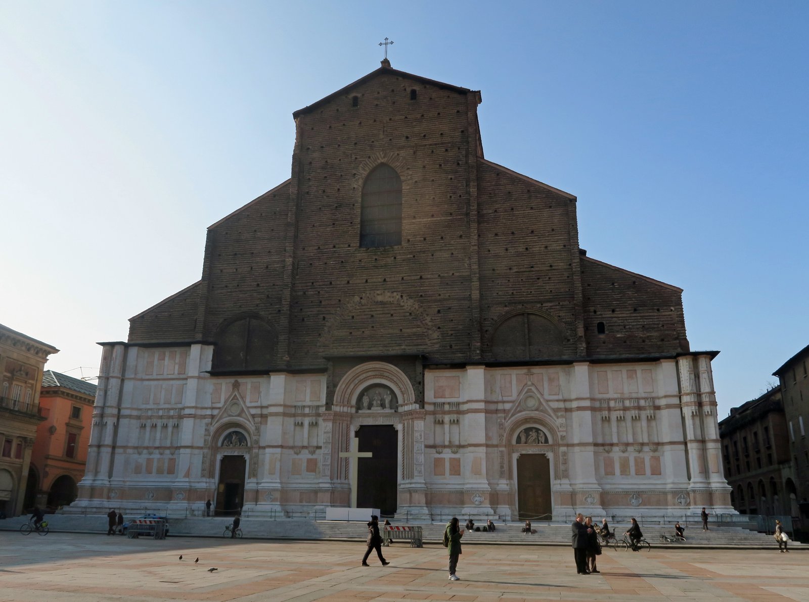 That large church is the Basilica of San Petronio. Construction on it was started in 1390. It is the 6th largest church in Europe. There's a distinctive look to the façade of the church. That's because it's unfinished. According to the design it was to be larger than Saint Peter's in Rome (link to our post), but Pope Pius IV put a stop to that, diverting the funds to create a new university. Hmmmm……more intrigue.