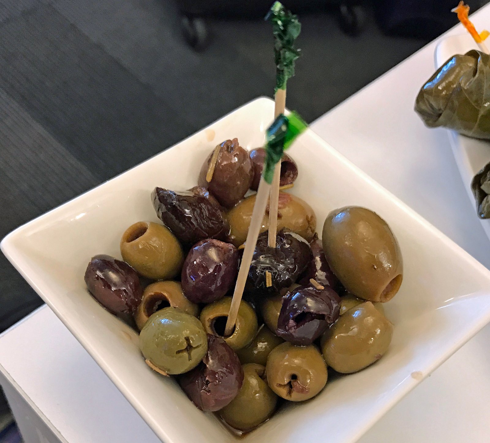 Still, our flight wasn't until 845pm and we needed something, however small, to eat. Since we were flying in Business Class, we had use of the Airspace Lounge. Be it ever so humble, flying on British means that you have a choice of complimentary wraps, appetizers, and desserts in the lounge. Along with drinks.