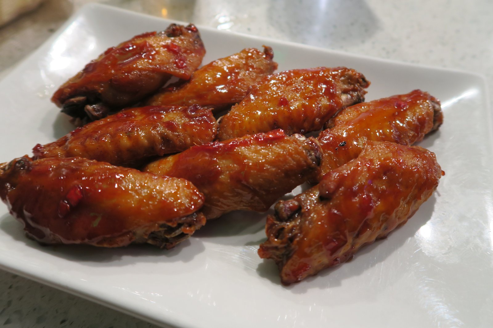 Anyway, these are basically "naked wings" with sweet chili sauce. The skin is rubbery, not fried well enough….and it's a version of sweet chili sauce. Lots of black spots on the bones….somewhat dry…….