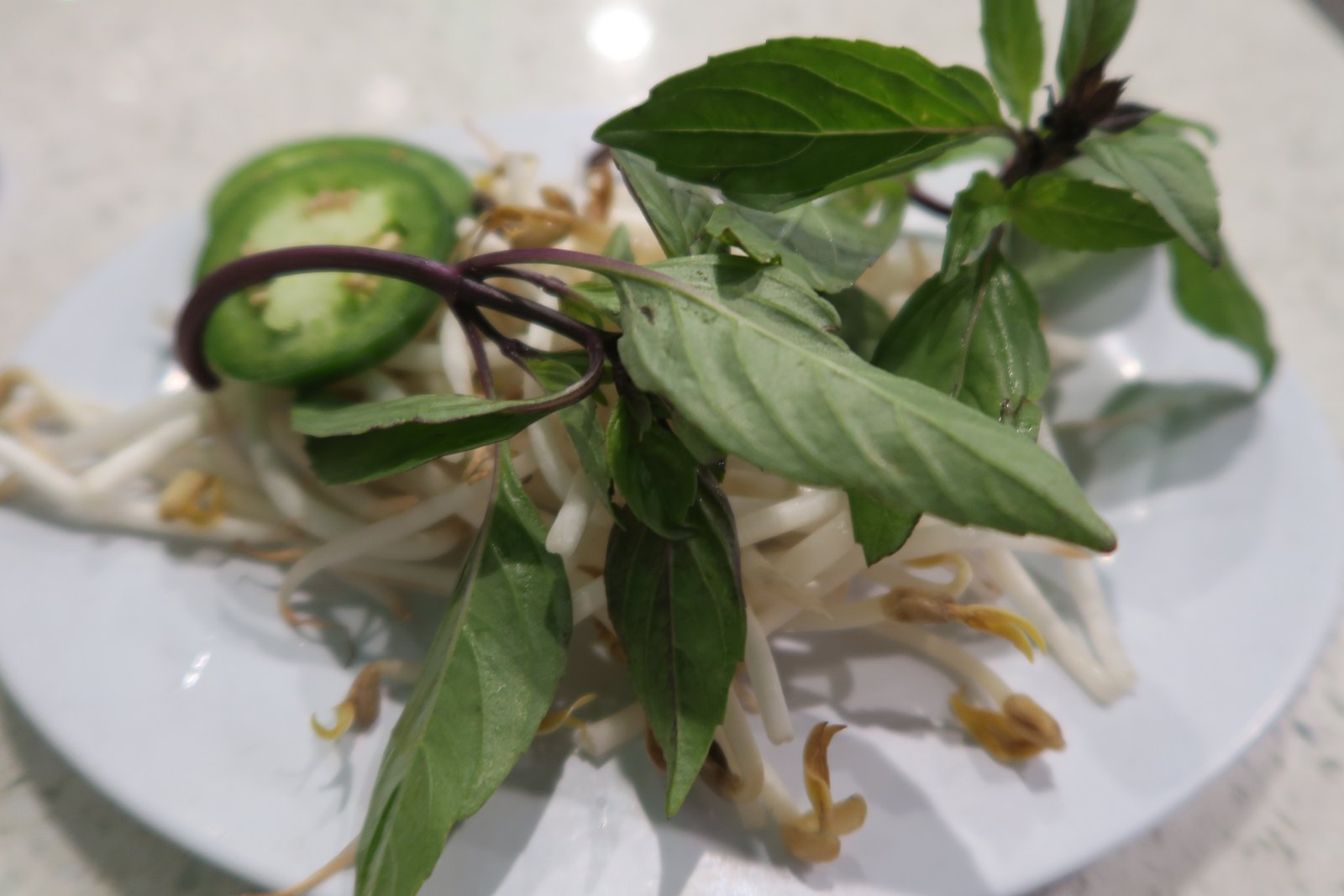 Looking at the photo to the right…….as is the norm in "Ameri-pho" fairly skimpy on the basil and sprouts.