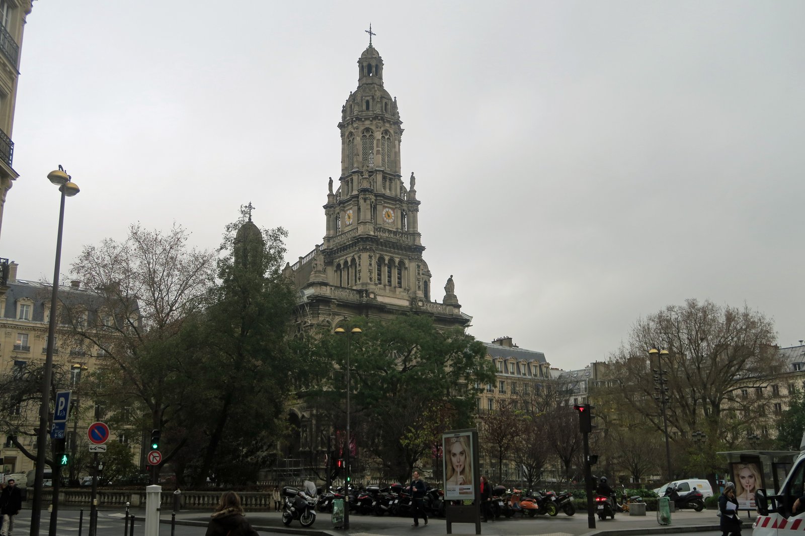 Up to Rue Lazare and past Église de la Sainte-Trinité.