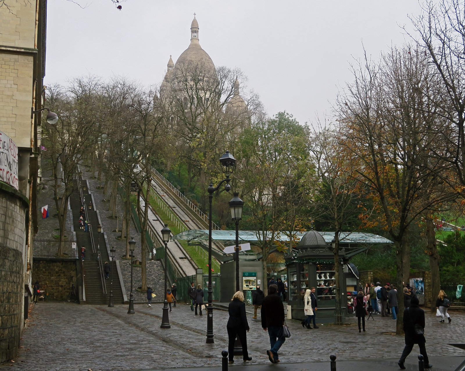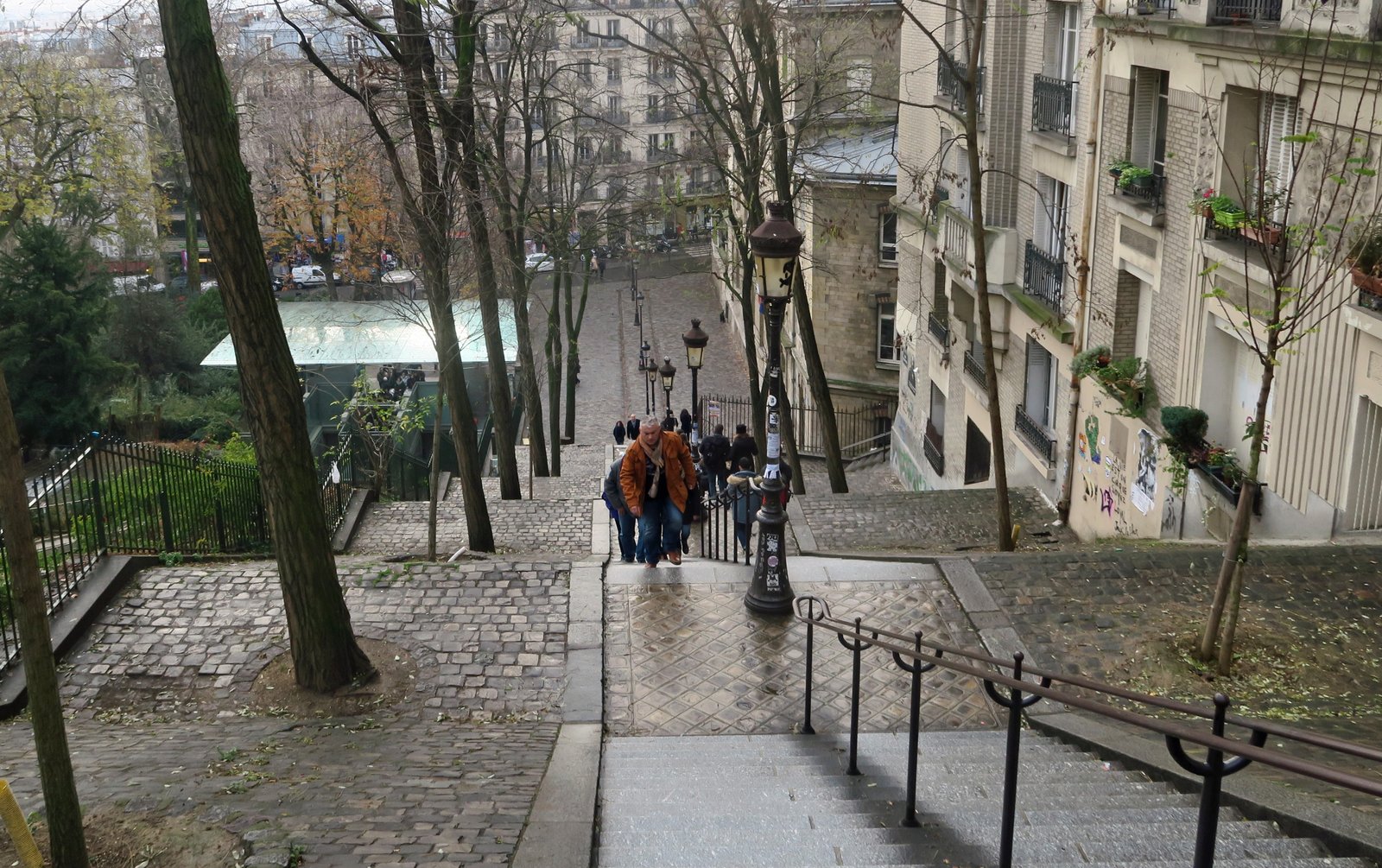 When we turned the corner we could see Sacre Coeur in the background along with the funicular tracks and stairs. This being the Missus….well, we took the stairs….all 300 of them.