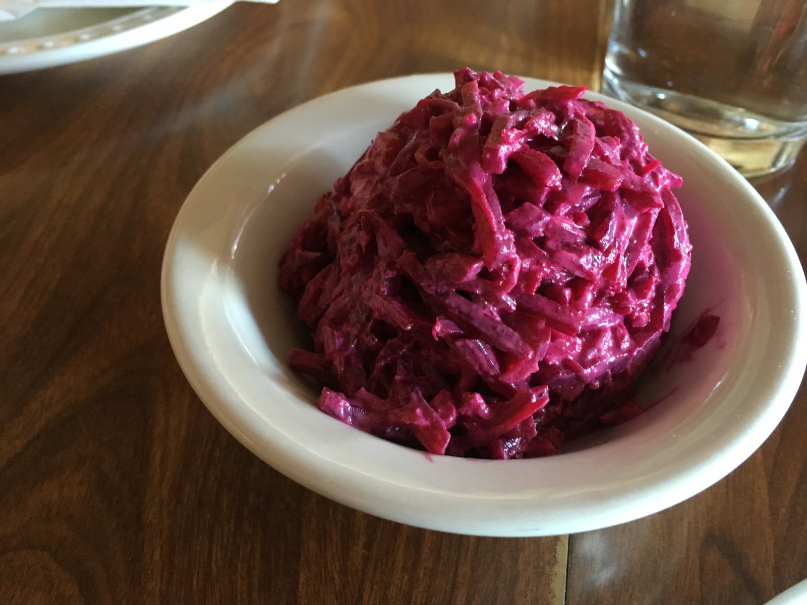 Kavkaz salad: Beets, walnuts, garlic and mayonnaise. This was my favorite.