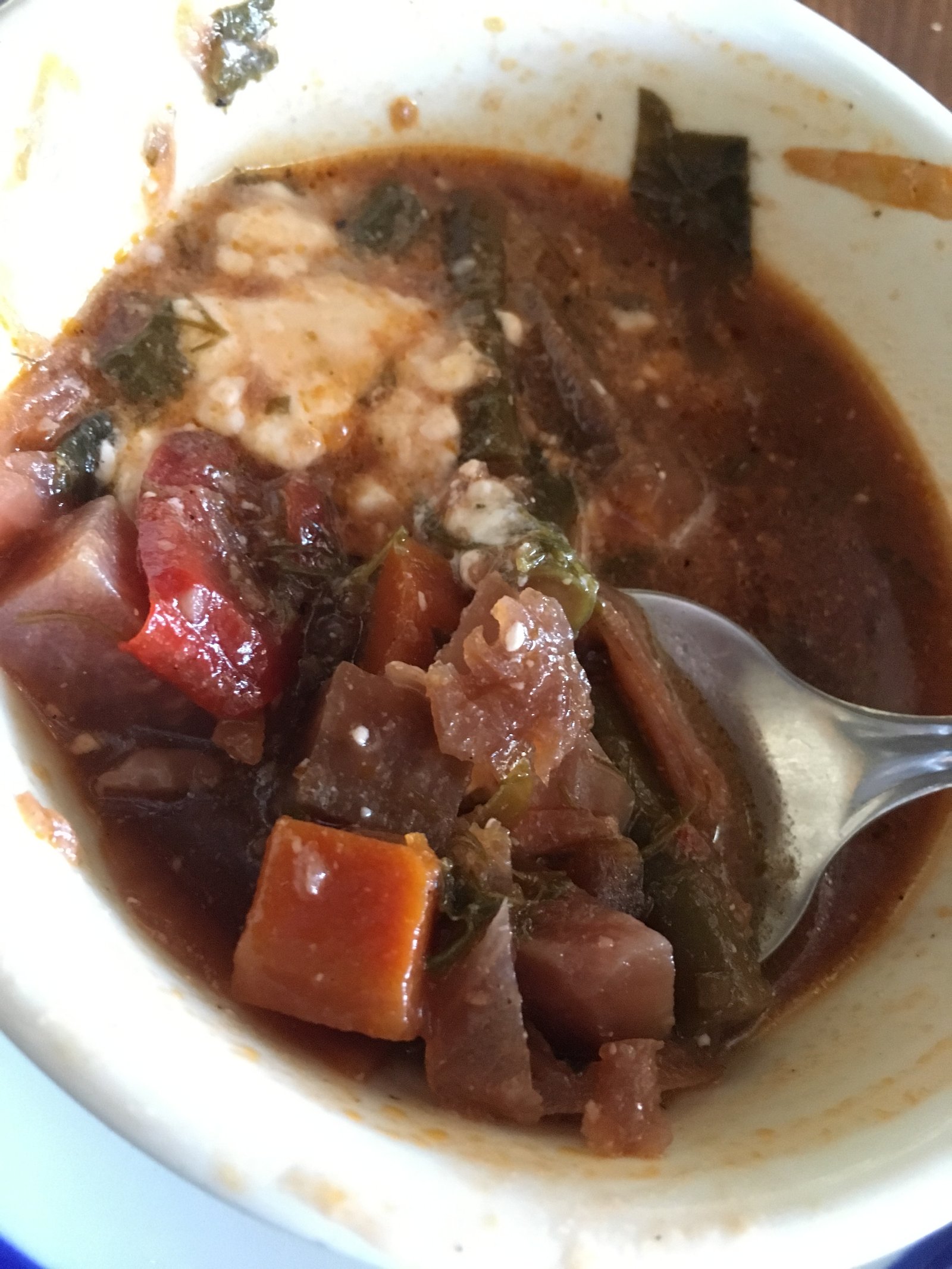 There are three soups to choose from- this vegetarian borscht is wonderful with its beet/celery/cabbage/ carrot/onion/bell pepper/potato base flavored with fresh herbs.