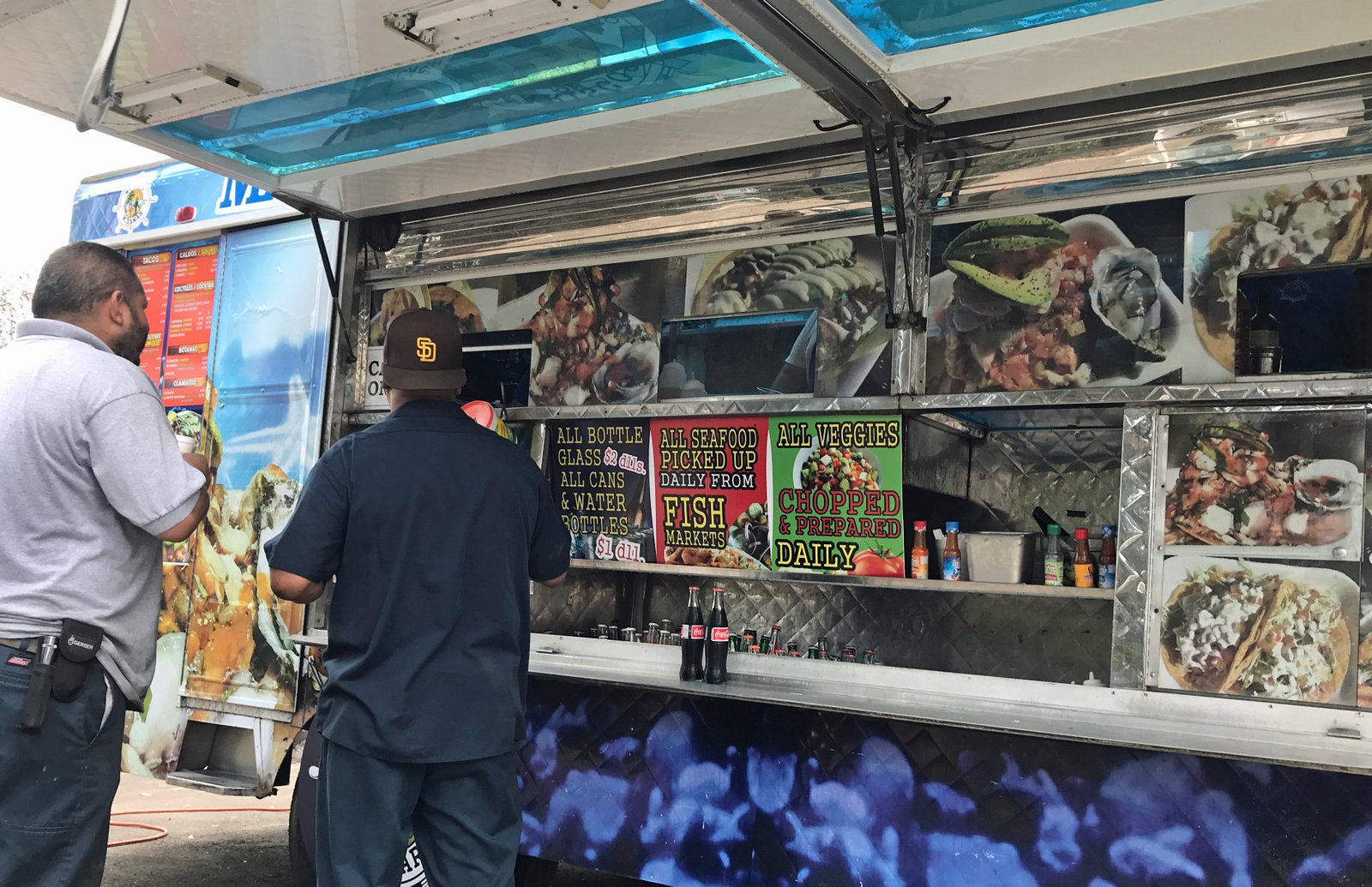 Notice the "Mariscos Rolex" tag on the truck.