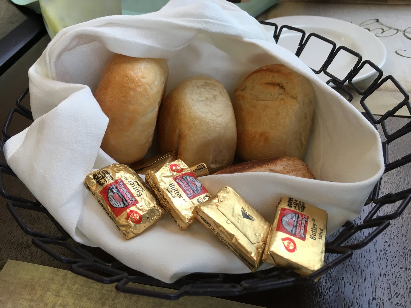 We returned for lunch about a week later (gosh it was so nice to be in air conditioned comfort). Fresh rolls (sourdough and wheat) were brought out before we ordered. Fluffy with a crisp crust; didn't really need butter.
