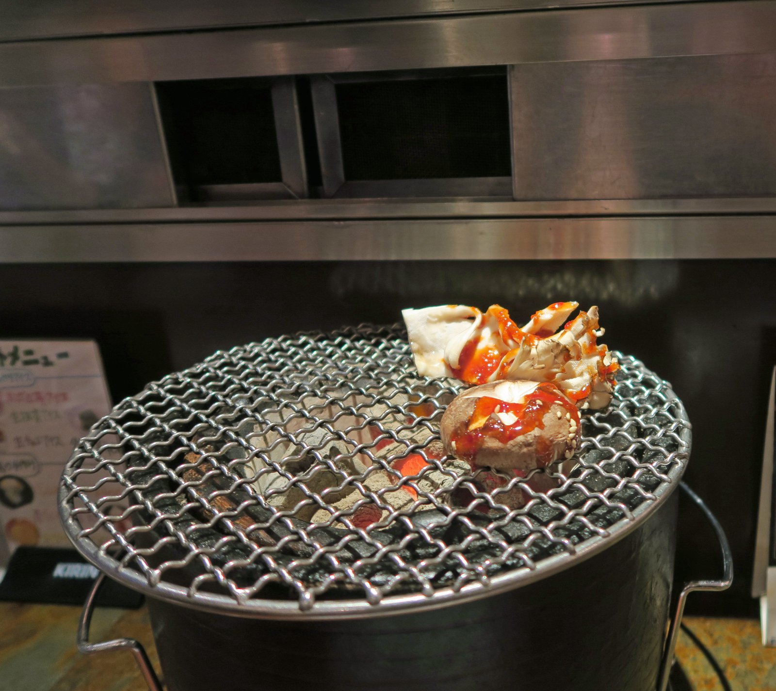 A brazier was delivered to the bar; with lit charcoal in it. We were wondering if we'd end up smelling like grilled meat; but a panel was opened up on the bar which did a great job sucking out the charcoal smoke.