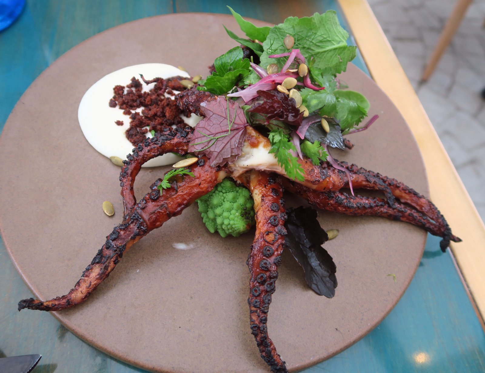 The soul of the flavor took me back to a certain dinner we had in Flores, Guatemala. The, what seemed to be something like an almost cheesy celriac puree was great at tempering the flavors of the octopus. Yes, this octopus might even be better than our favorite restaurant in Chania.