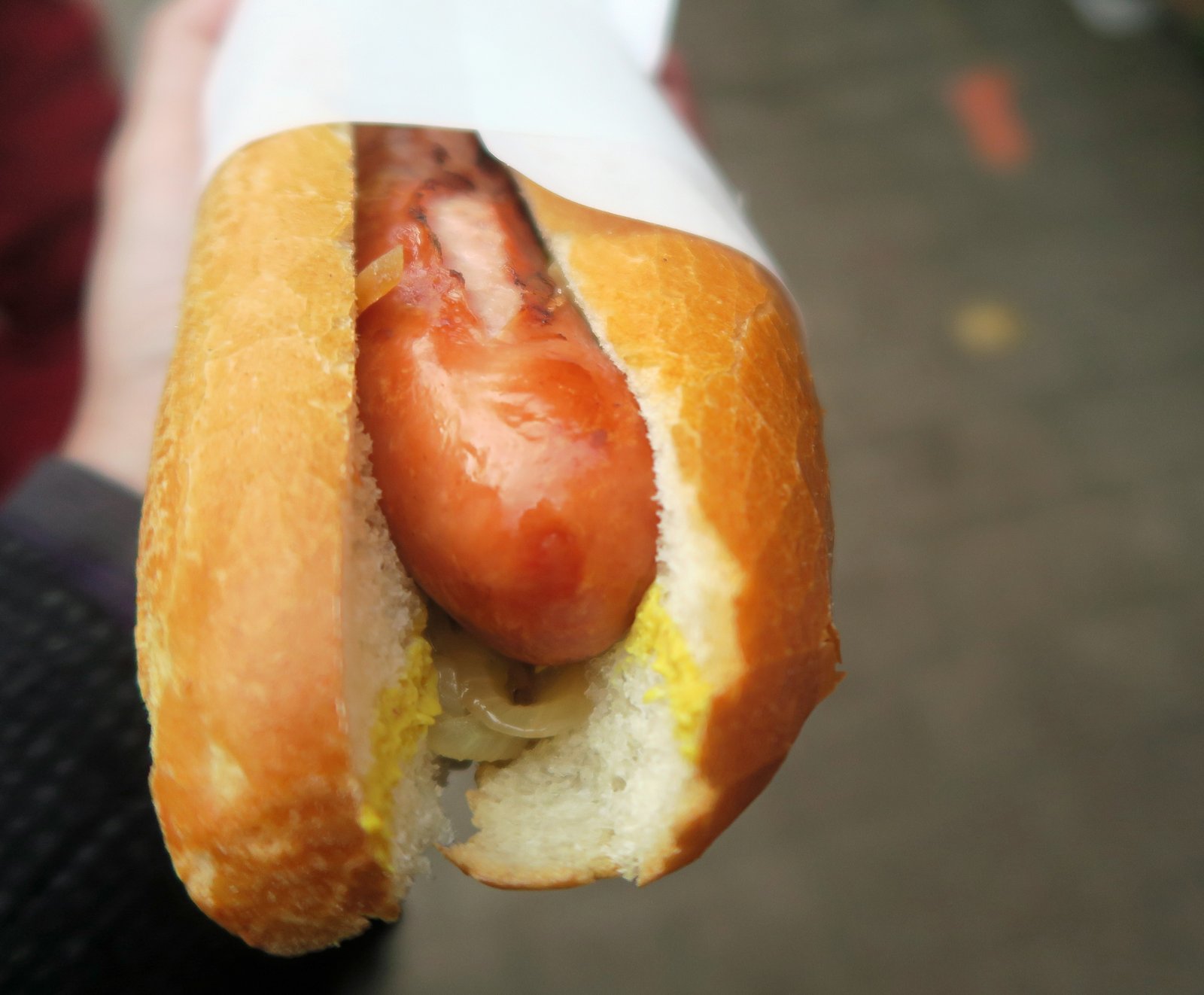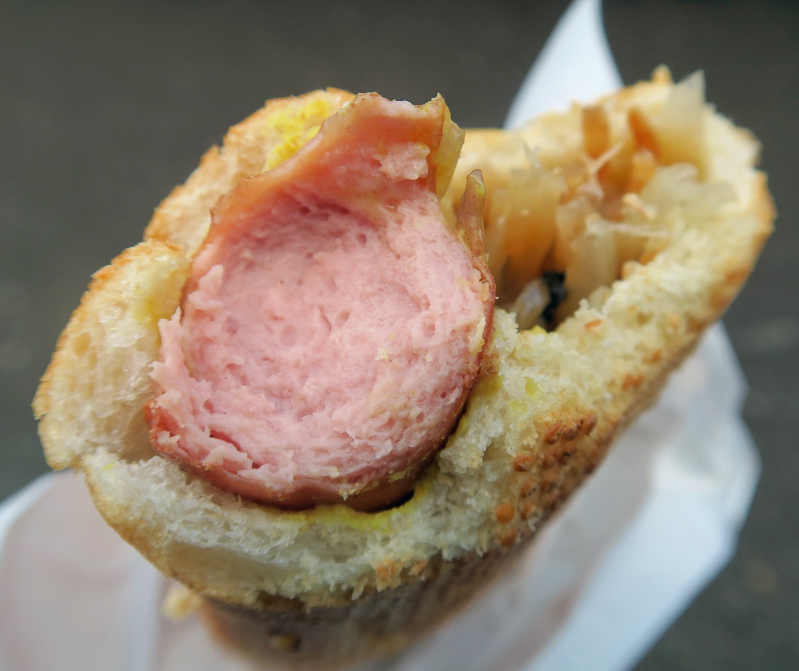 By the way; this was delicious; the forcemeat style sausage had an amazing snap, was perfectly seasoned. The mustard added a mild pungency and those onions were really sweet.