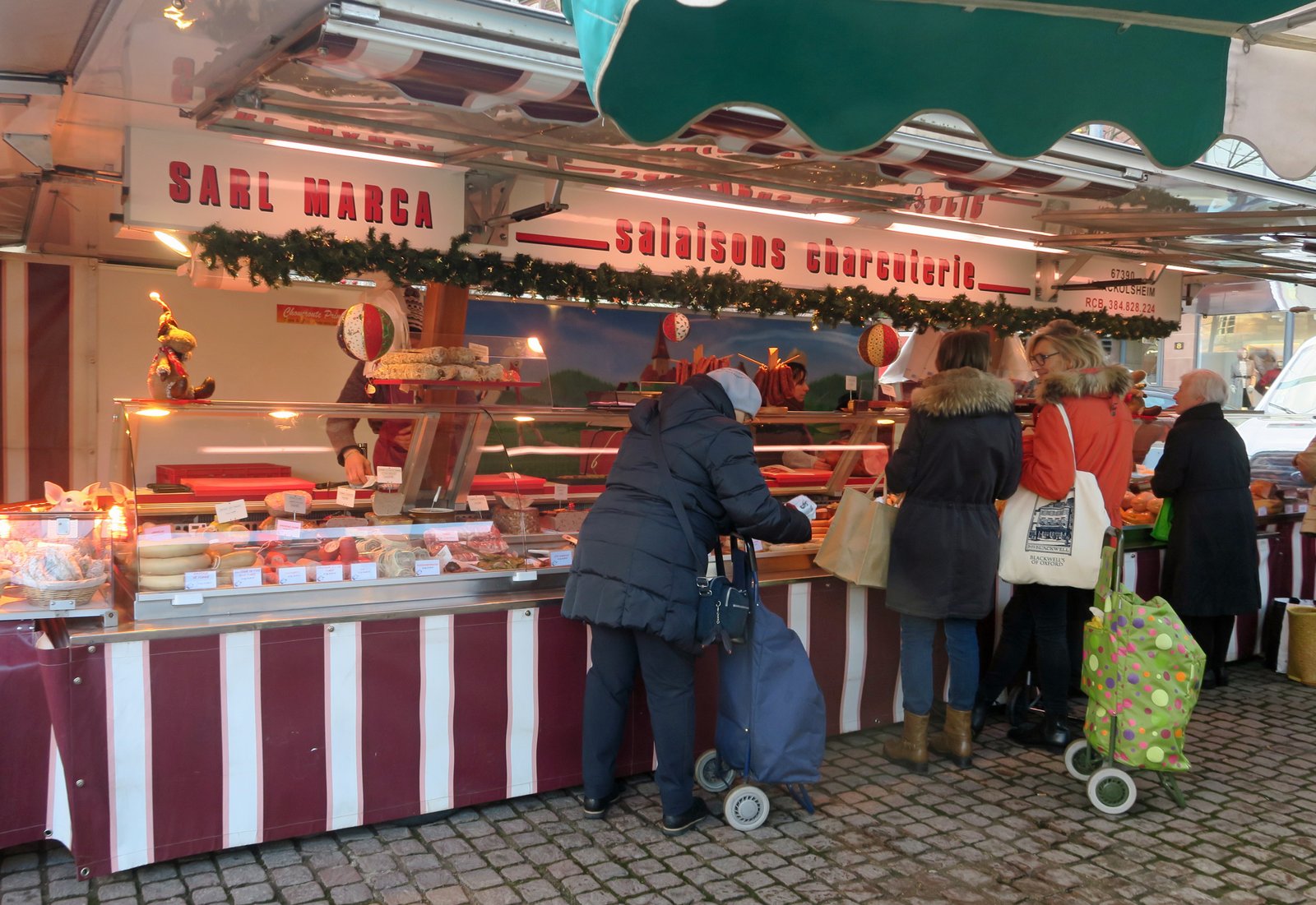 There were folks pulling along wheeled shopping baskets……