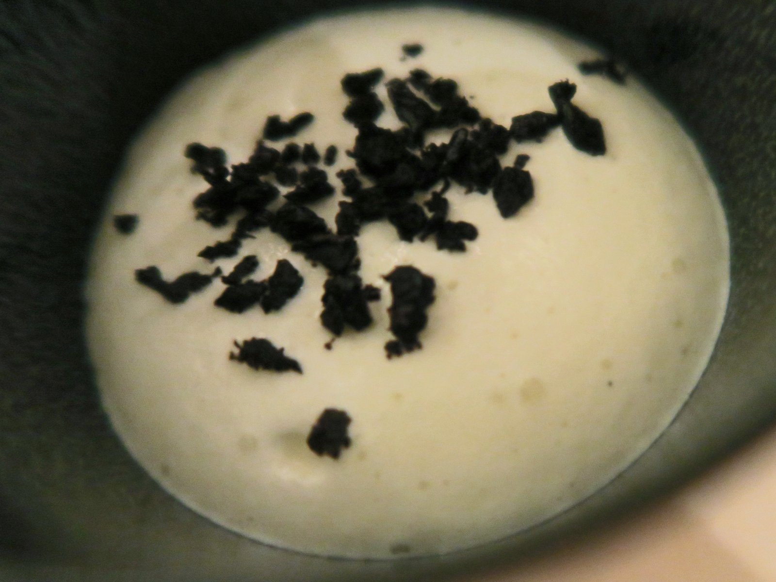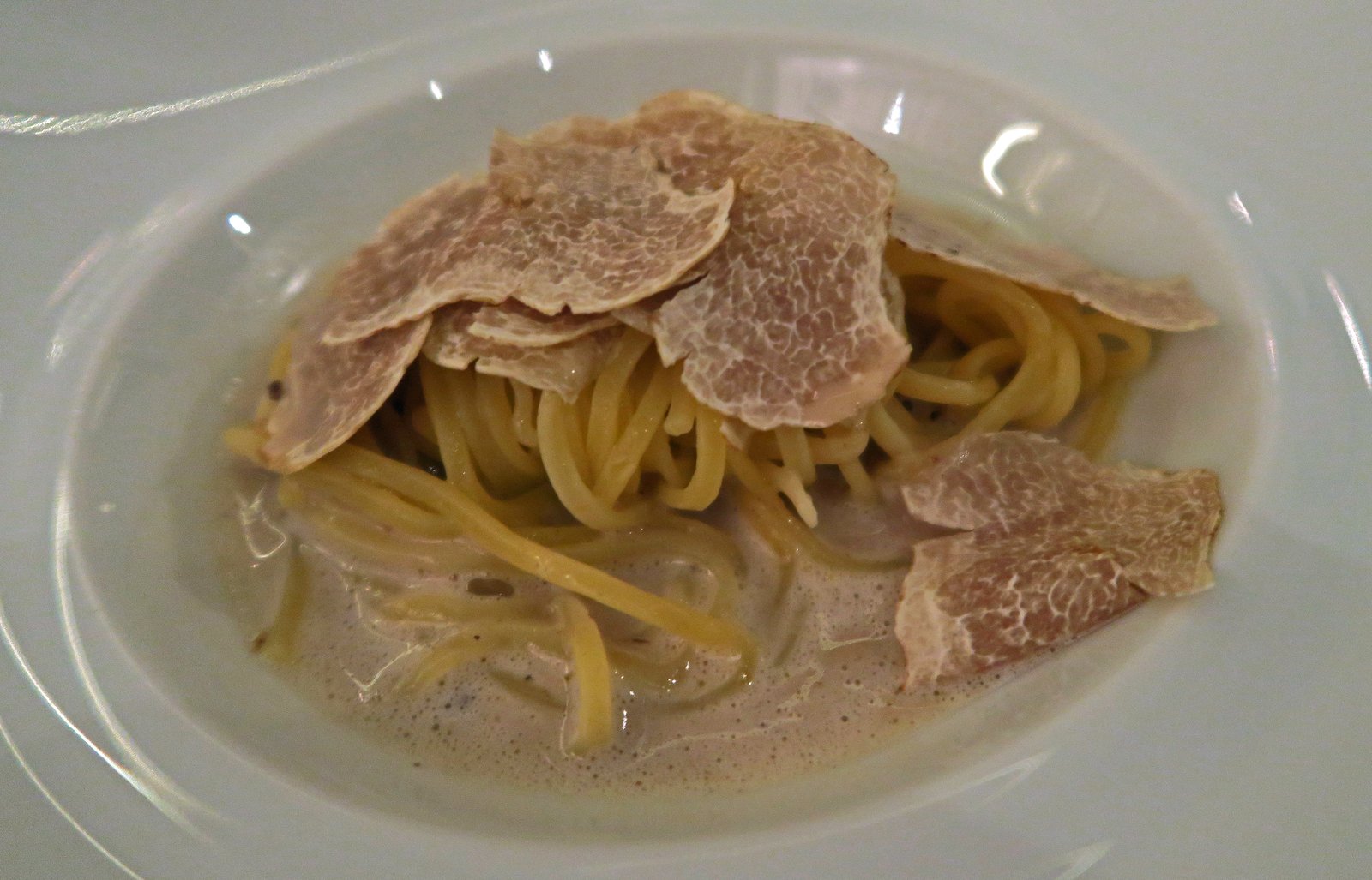 When we were seated; one of the Servers came around with a glass container….as soon as he opened it the entire room was filled with the fragrance of white truffle. So, being on vacation, how could we not order it? The container would make it to every table and we'd be assaulted with the intoxicating aroma of truffle. There was a table of four across the room, one of the young men seemed to be a regular. Everyone knew him and chatted with him. When the glass container started making its way to his table; he raised both hands in surrender and said "c'est bonne…c'est bonne"!