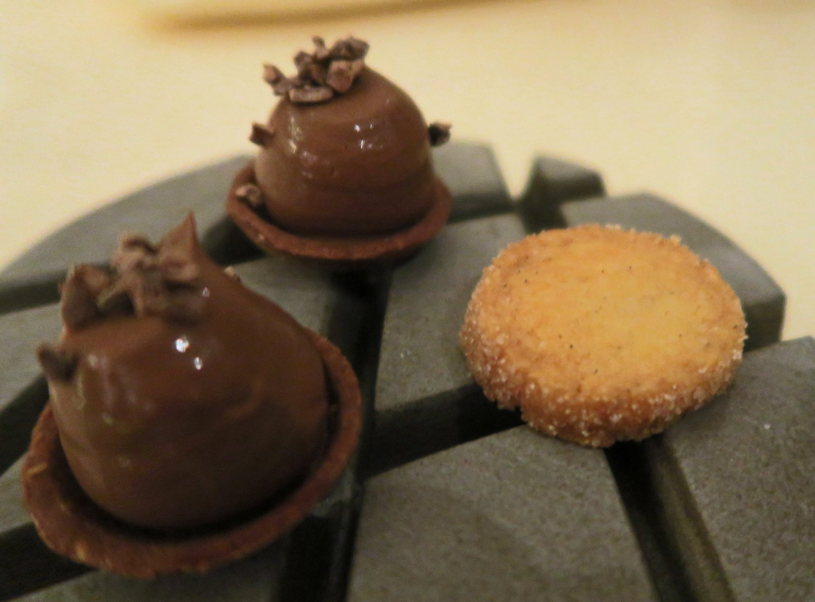 The desserts? Well, that's the Missus's department. I will say that I really enjoyed the Vanilla Mousses that was served with black olives, where the saltiness of the olives just balanced out the sweetness off the vanilla. The Missus loved the chocolates with jellies in the center.