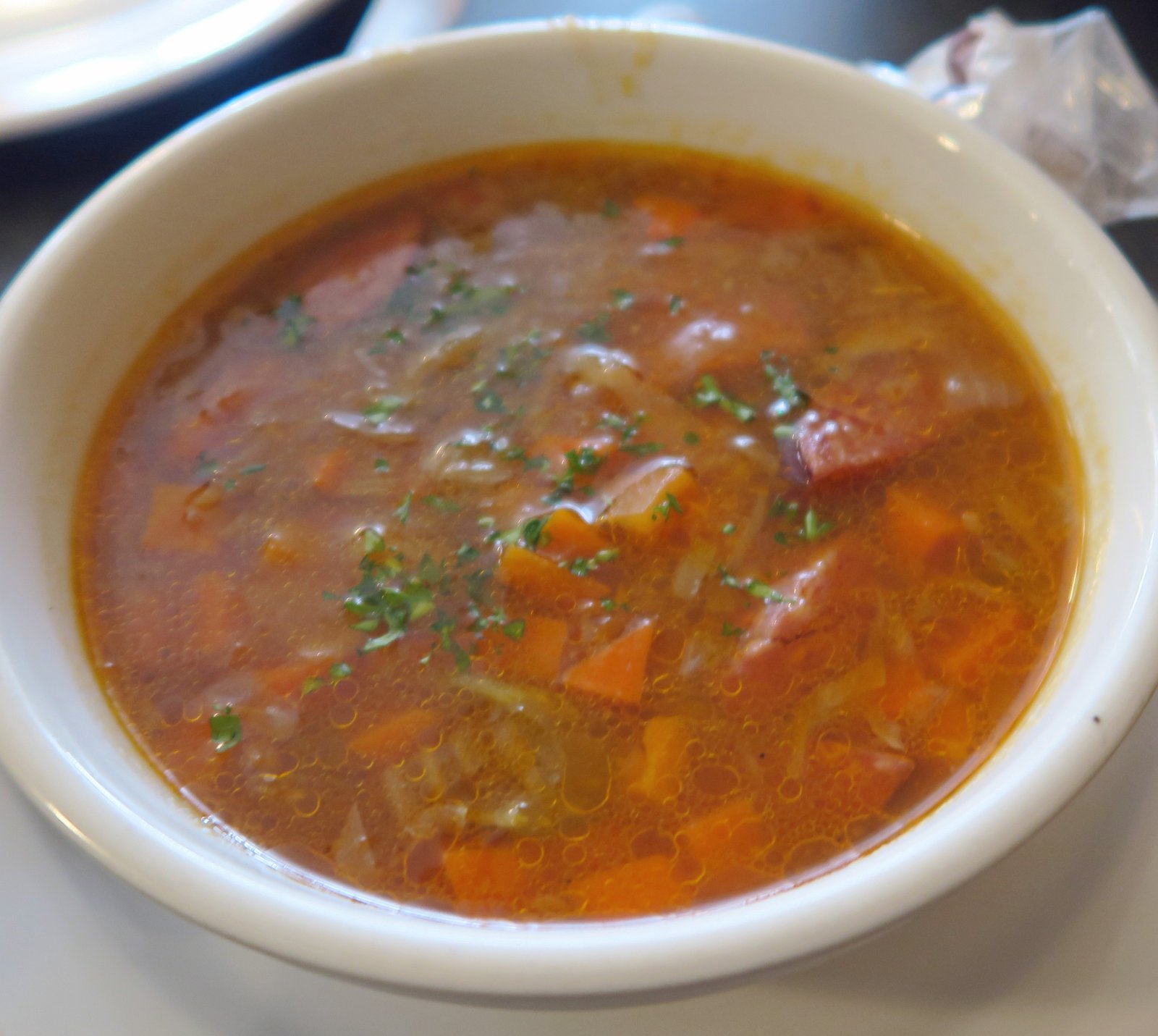 We ordered a couple of things off the menu. First up was the Reindeer Sausage Vegetable Soup which was on the greasy side.
