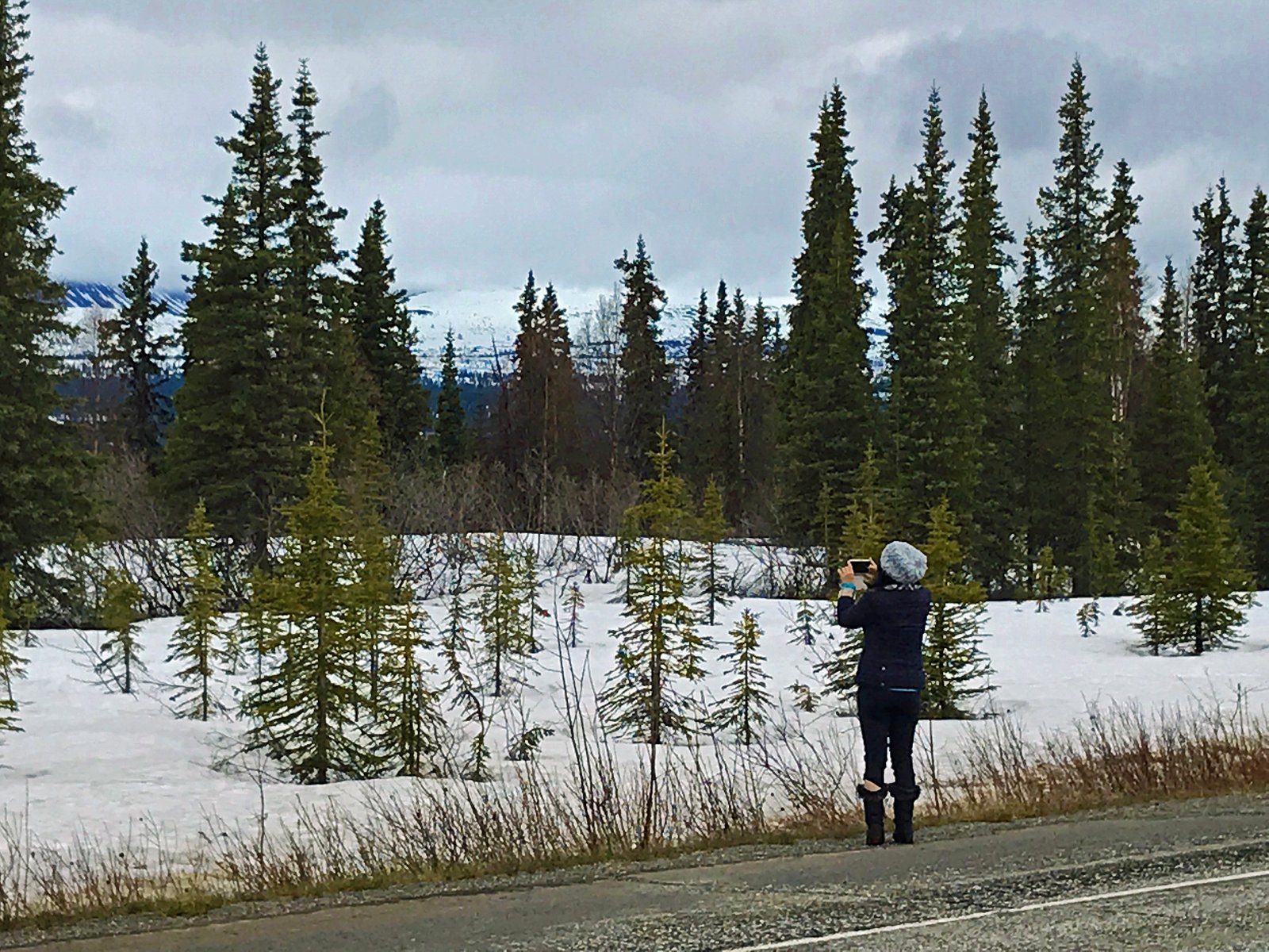 A couple of three hours or so later, we made it to Denali National Park. But not before watching this moose cross the road.