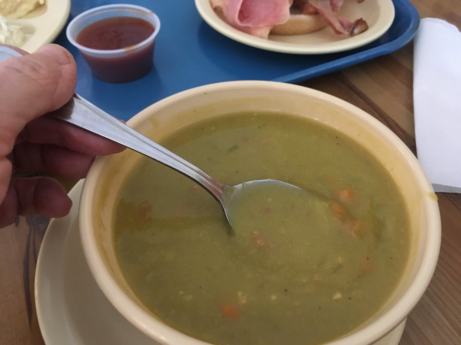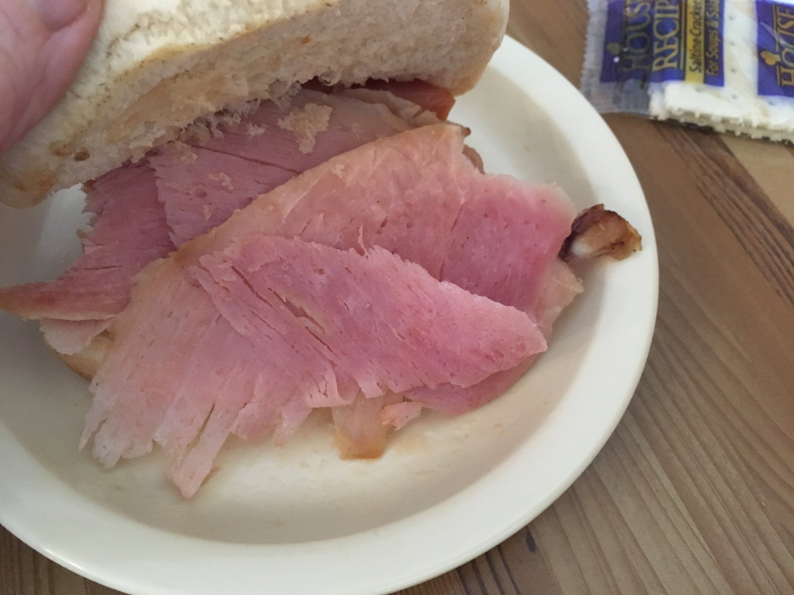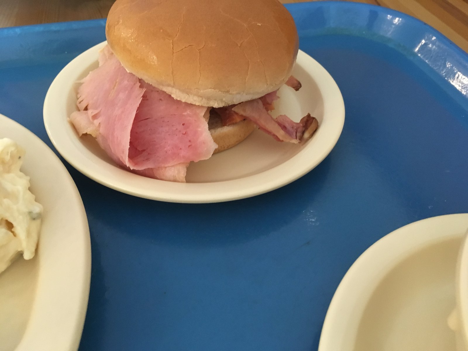 The BBQ (smoked) ham sandwich. Plenty of ham…warm, juicy, flavorful. The combination of a ham sandwich with soup is just so right.