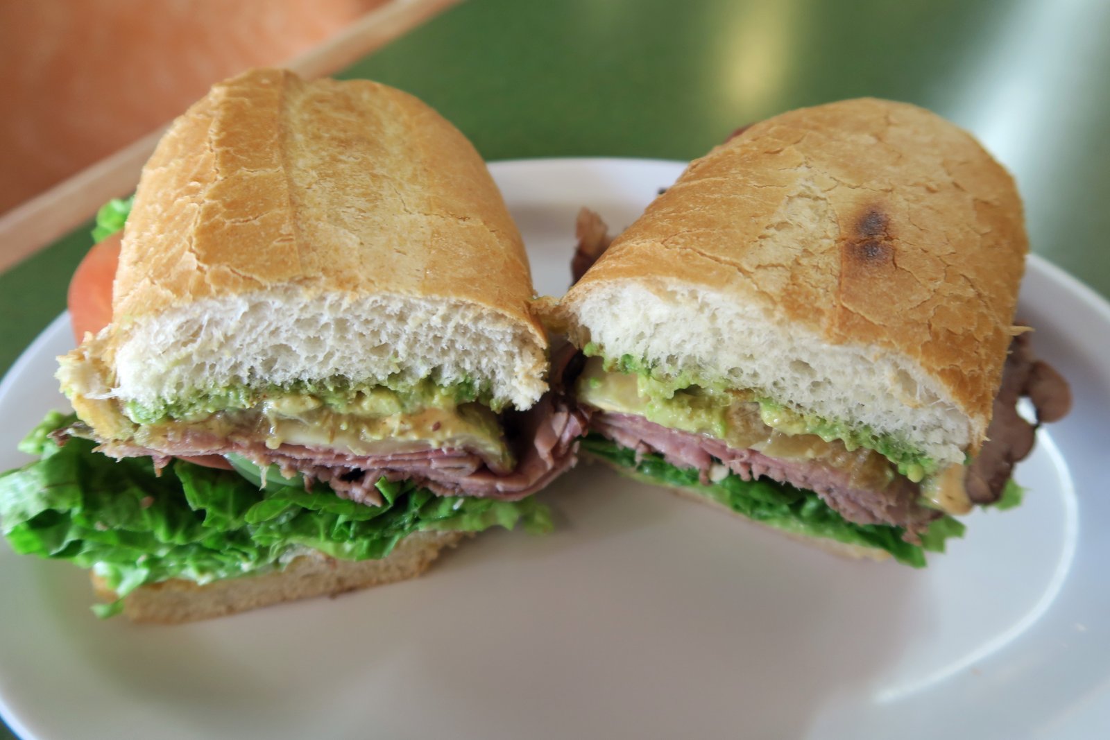 This one is called the "Spicy Julio". I believe one of the "twins"; John told me they make the roast beef inhouse these days? Anyway; a toasted roll, a sauce with pickled jalapenos, guac….this was quite nice on an especially warm fall day.