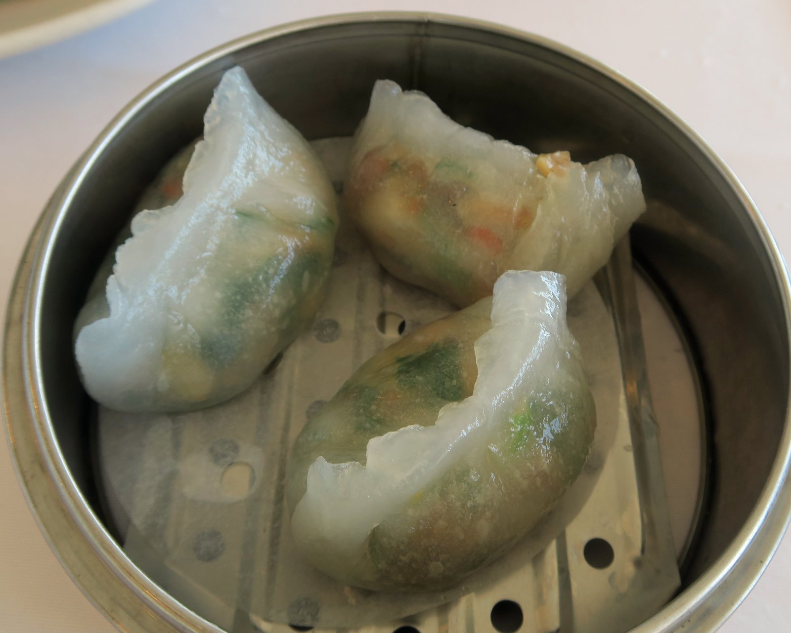 We got two items that had usually been fairly dependable here; but you can easily see the holes in the wrappers of the Pan Fried Chive Dumplings: