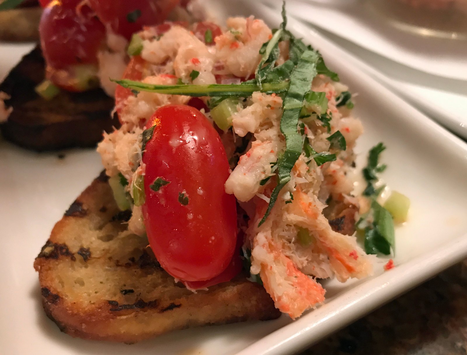 I'd ordered the Seafood Crostini; which featured both King Crab and Dungeness Crab on grilled Rosemary Bread. This was pretty good in bar food terms…..after all, how often do you mix the phrases King Crab and "pub grub".