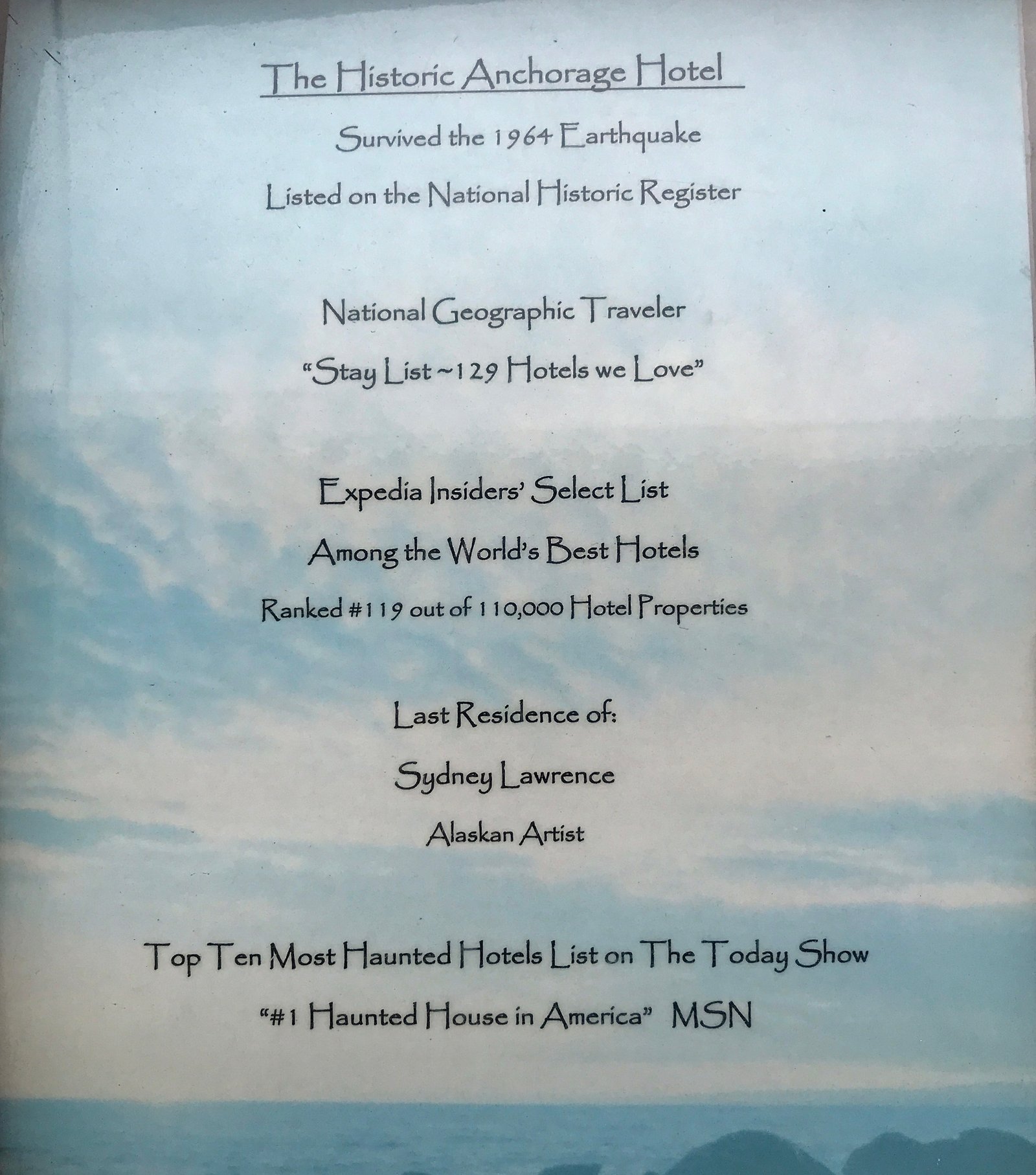 I guess it's just fitting to do this post on Halloween; after all we were staying at a haunted hotel, one that is actually the only hotel in Anchorage that's listed on the National Register of Historic Places. But first, we had to get there. It was just a simple 230 mile drive from where we were staying at McKinley Creek to the rental car return in downtown Anchorage.
