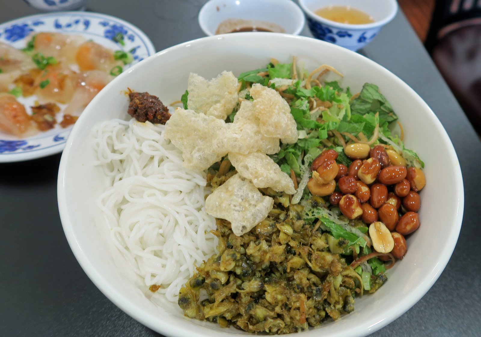 The Bun Hen is by far the best item I've had here so far. While not nearly as well seasoned or spice as the version at Mien Trung, the clams had a nice mildly chewy texture, had a mild savory flavor, without any sandy-grittiness. That mam nem did it's magic on the dish as a whole; adding a wonderful deep-funky savoriness to the dish. The chicharrons were fresh, light, and crunchy. The bun was perfectly prepared and there was a good amount of banana blossom in the dish. It was very satisfying…..